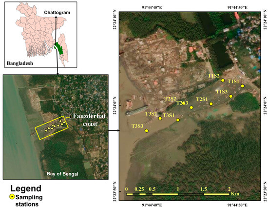- Khan, M.S.; Das, J.; Kabir, M.H. Monitoring coastline changes in the coastal belt of chittagong in Bangladesh Using GIS and remote sensing. Asian J. Geogr. Res. 2019, 2, 1–13. [Google Scholar]