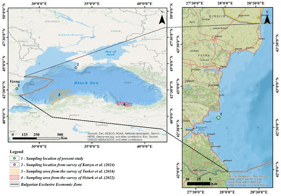 Map showing the location of the M. merluccius specimen records in the Black Sea [9,10,11].