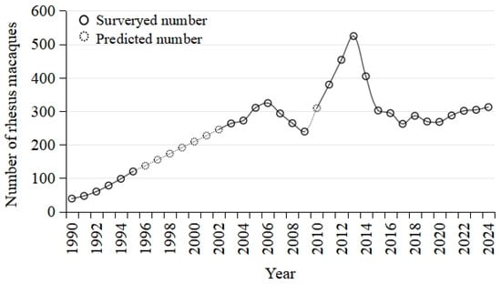 Number of rhesus macaques inhabiting the Wulongkou area, Jiyuan City, China.