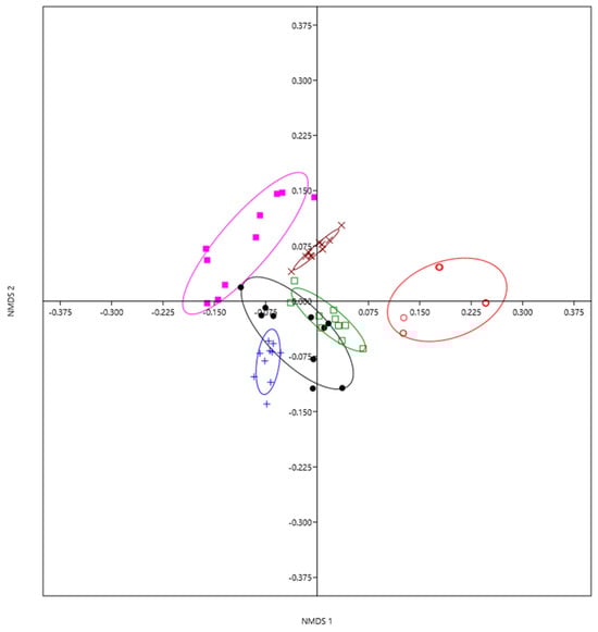 The software used for the Shapiro–Wilk, Levene, ANOVA, Tukey, and GLM tests was STATISTICA 8.0 [60], and for NMDS, ANOSIM, and SIMPER, it was Past 4.0 [61].