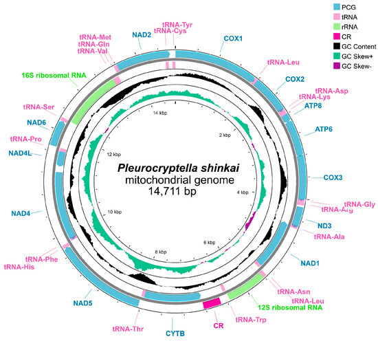 Gene map of the mitogenome of P. shinkai. CR: control region; PCG: protein-coding gene; rRNA: ribosomal RNA; tRNA: transfer RNA.