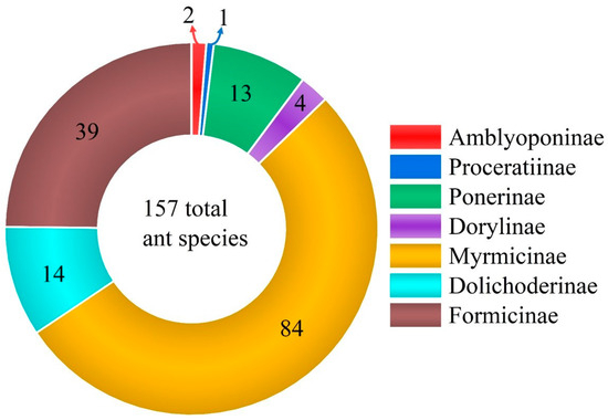 - Li, Z.Y.; Xu, Z.H.; Zhang, X.M.; Li, T.; Yin, X.D.; Duan, J.H. Ant Species Diversity in the Central and Northern Parts of the Western Sichuan Plateau in China. Diversity 2023, 15, 935. [Google Scholar] [CrossRef]