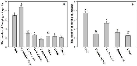 - Stephens, S.S.; Wagner, M.R. Using ground foraging ant (Hymenoptera: Formicidae) functional groups as bioindicators of forest health in northern Arizona ponderosa pine forests. Environ. Entomol. 2006, 35, 937–949. [Google Scholar] [CrossRef]