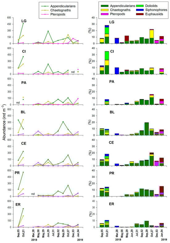 | Region | Date | Mesh | Abundance (ind m−3) | Holoplankton (%) | Meroplank. | Source | ||||