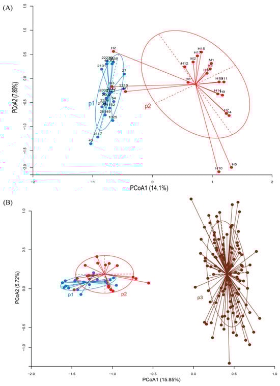 - Peakall, R.; Smouse, P.E. Genalex 6: Genetic Analysis in Excel. Population Genetic Software for Teaching and Research. Mol. Ecol. Notes 2006, 6, 288–295. [Google Scholar] [CrossRef]