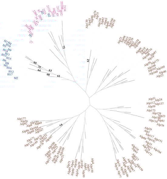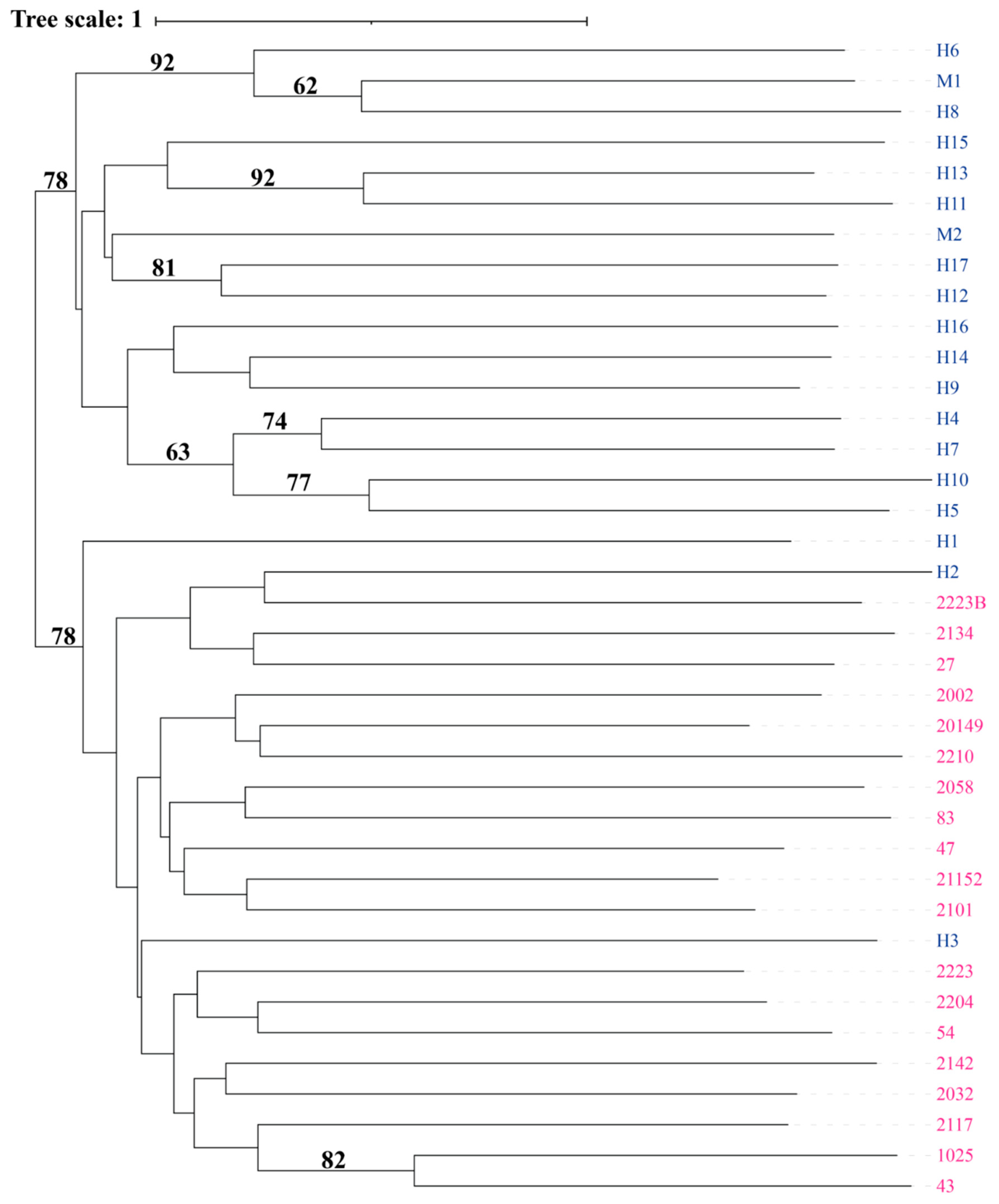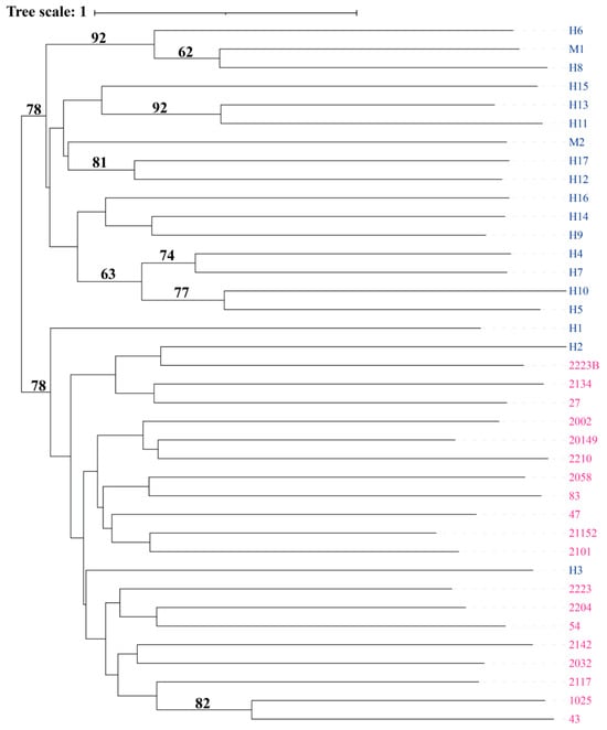 - Letunic, I.; Bork, P. Interactive Tree of Life (iTOL) v6: Recent Updates to the Phylogenetic Tree Display and Annotation Tool. Nucleic Acids Res. 2024, 52, W78–W82. [Google Scholar] [CrossRef]