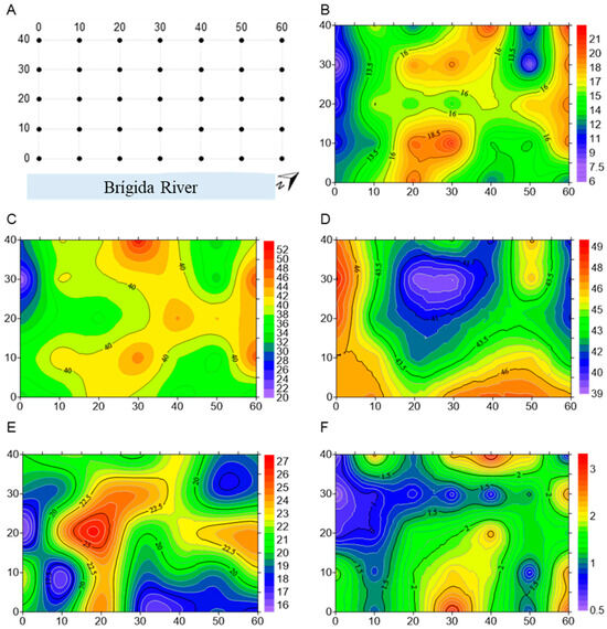 - Cambardella, C.A.; Moorman, T.B.; Novak, J.M.; Parkin, T.B.; Karlen, D.L.; Turco, R.F.; Konopka, A.E. Field-Scale Variability of Soil Properties in Central Iowa Soils. Soil Sci. Soc. Am. J. 1994, 58, 1501–1511. [Google Scholar] [CrossRef]
