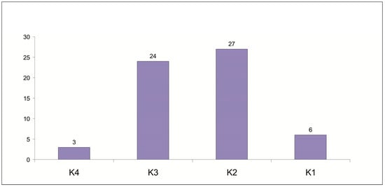 Number of boxes examined with different number of components: K1—one, K2—two, K3—three, K4—four.