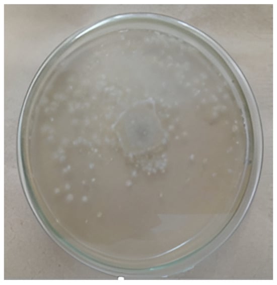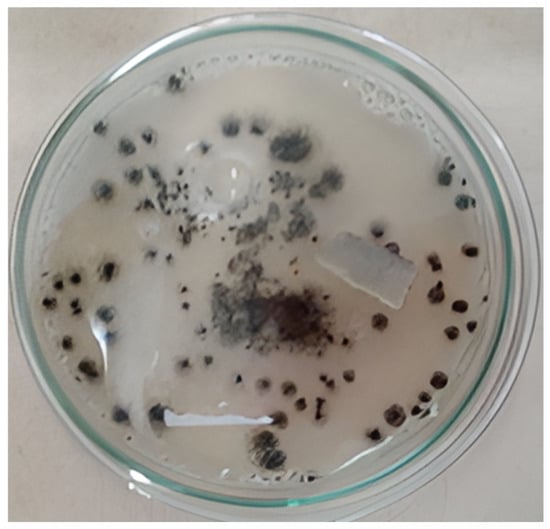 Ten grams of soil were diluted in sterile peptone water. From this suspension, a 10−1 dilution was prepared, and 1 mL aliquots were taken. Then, 50 μL of each was plated onto potato dextrose agar (PDA) modified with 10% tartaric acid to inhibit bacterial growth. The plates were incubated at 25 ± 1 °C for 5 days. Negative and positive controls were included to verify the absence of contamination.