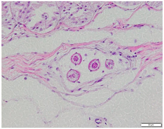 - Diamare, V. Bemerkungen ueber Dipylidienlarven. Zentralbl. Bact. Parasitenk. 1894, 14, 565–566. [Google Scholar]