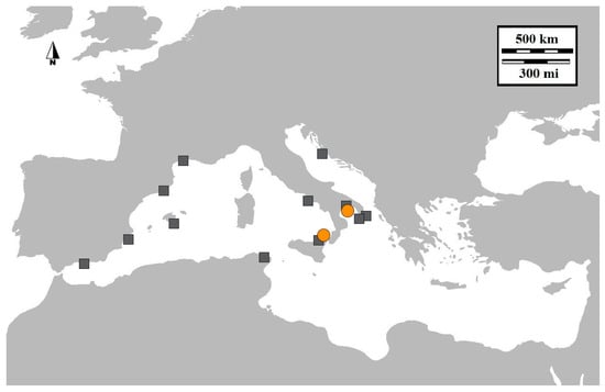 - Vitale, D.; Giacobbe, S.; Spinelli, A.; De Matteo, S.; Cervera, J.L. “Opisthobranch” (mollusks) inventory of the Faro Lake: A Sicilian biodiversity hot spot. Ital. J. Zool. 2016, 83, 524–530. [Google Scholar] [CrossRef]