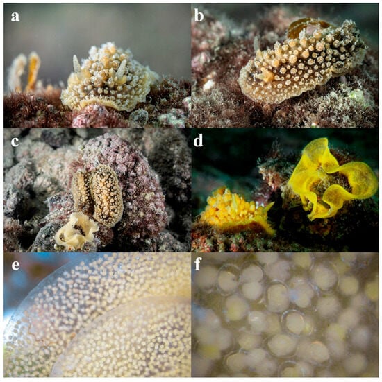 - Furfaro, G.; Schreier, C.; Trainito, E.; Pontes, M.; Madrenas, E.; Girard, P.; Mariottini, P. The Sea Slug Doriopsilla areolata Bergh, 1880 (Mollusca, Gastropoda) in the Mediterranean Sea: Another Case of Cryptic Diversity. Diversity 2022, 14, 297. [Google Scholar] [CrossRef]