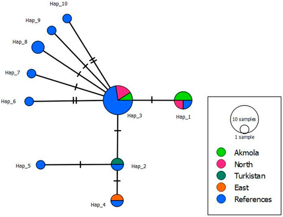 T. hydatigena, with Hap_3 being the most common (10 isolates). Phylogenetic analysis showed that