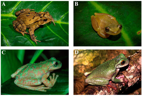 38. Frost, D.R. Amphibian Species of the World: An Online Reference, version 6.2; American Museum of Natural History: New York, NY, USA, 2025. Available online: https://amphibiansoftheworld.amnh.org/index.php (accessed on 15 June 2025).