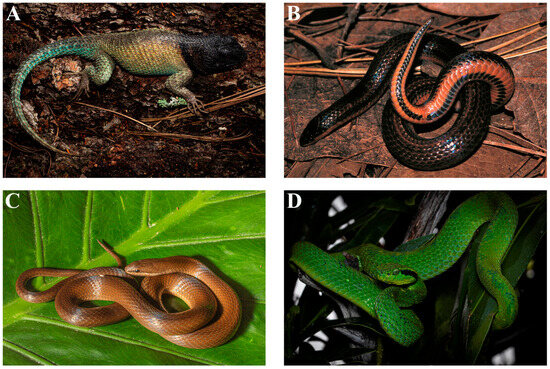 40. Uetz, P.; Freed, P.; Aguilar, R.; Reyes, F.; Kudera, J.; Hošek, J. The Reptile Database. Available online: http://www.reptile-database.org (accessed on 3 May 2025).