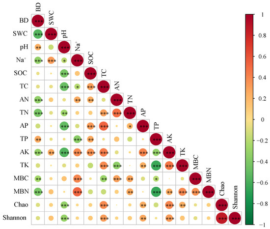 | BD | SWC | pH | Na+ | SOC | TC | AN | TN | AP | TP | AK | TK | MBC | MBN | |