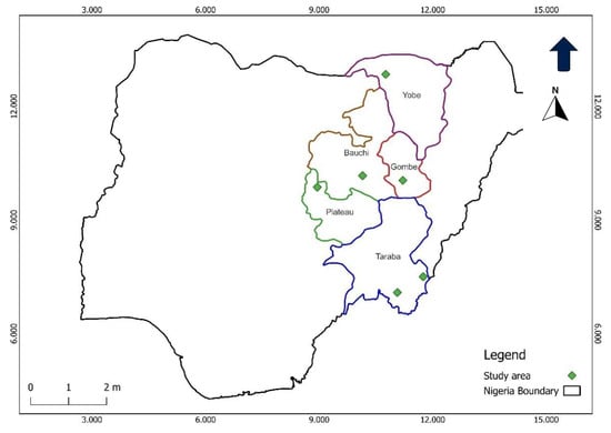 Map of surveyed sites in Nigeria after the hotspot analysis was conducted.