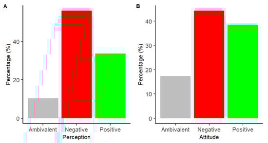 (A) Respondents’ perception across all survey sites. (B) Respondents’ attitudes across all survey sites.
