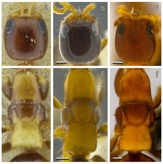 S. annobonensis Masini, Colombo & Azevedo sp. nov. macropterous female (paratype). (a) Habitus, lateral view; (b) head in dorsal, (c) anterior and (d) lateral views; (e) mesosoma in dorsal and (f) lateral views. Scale bars = 100 μm.