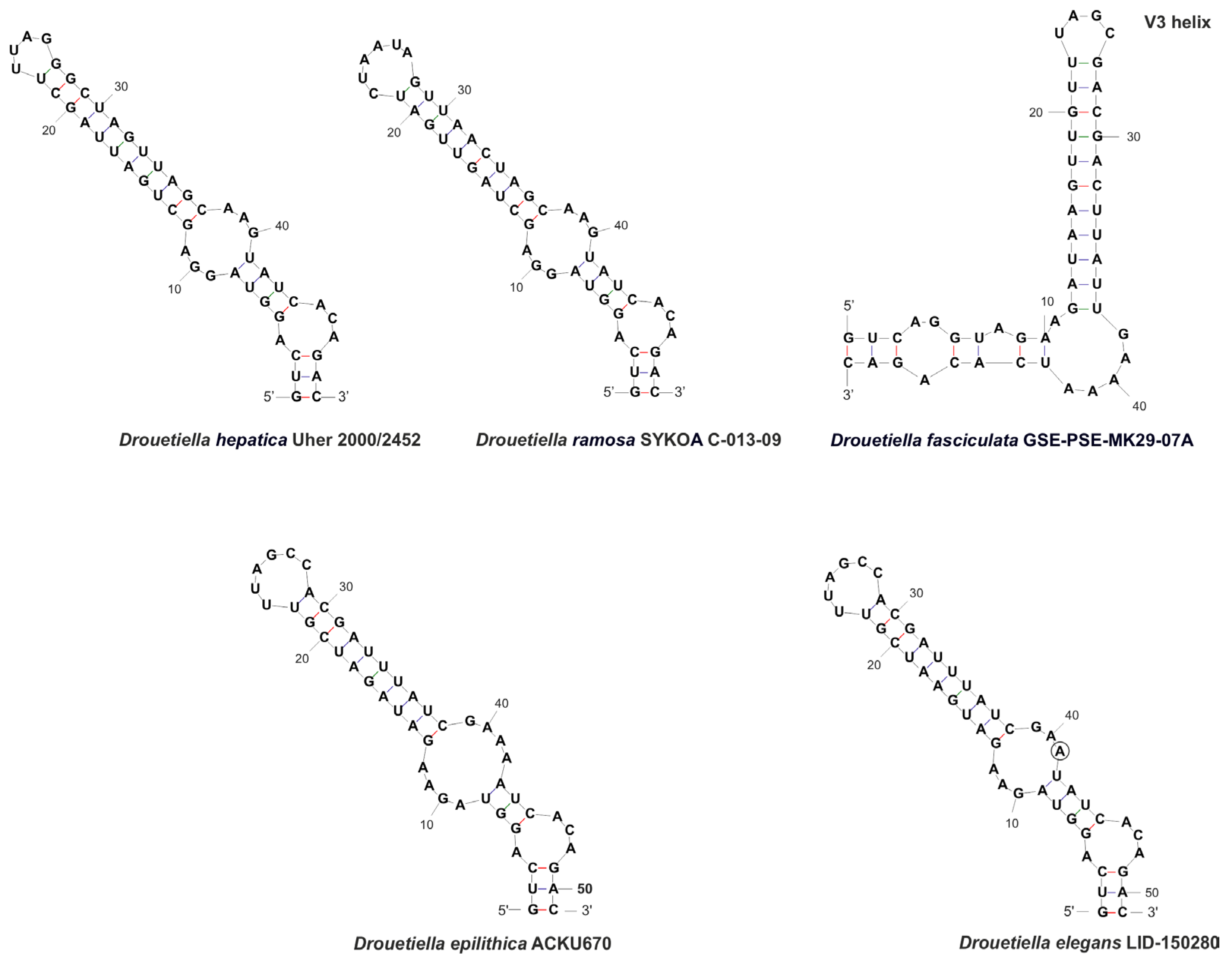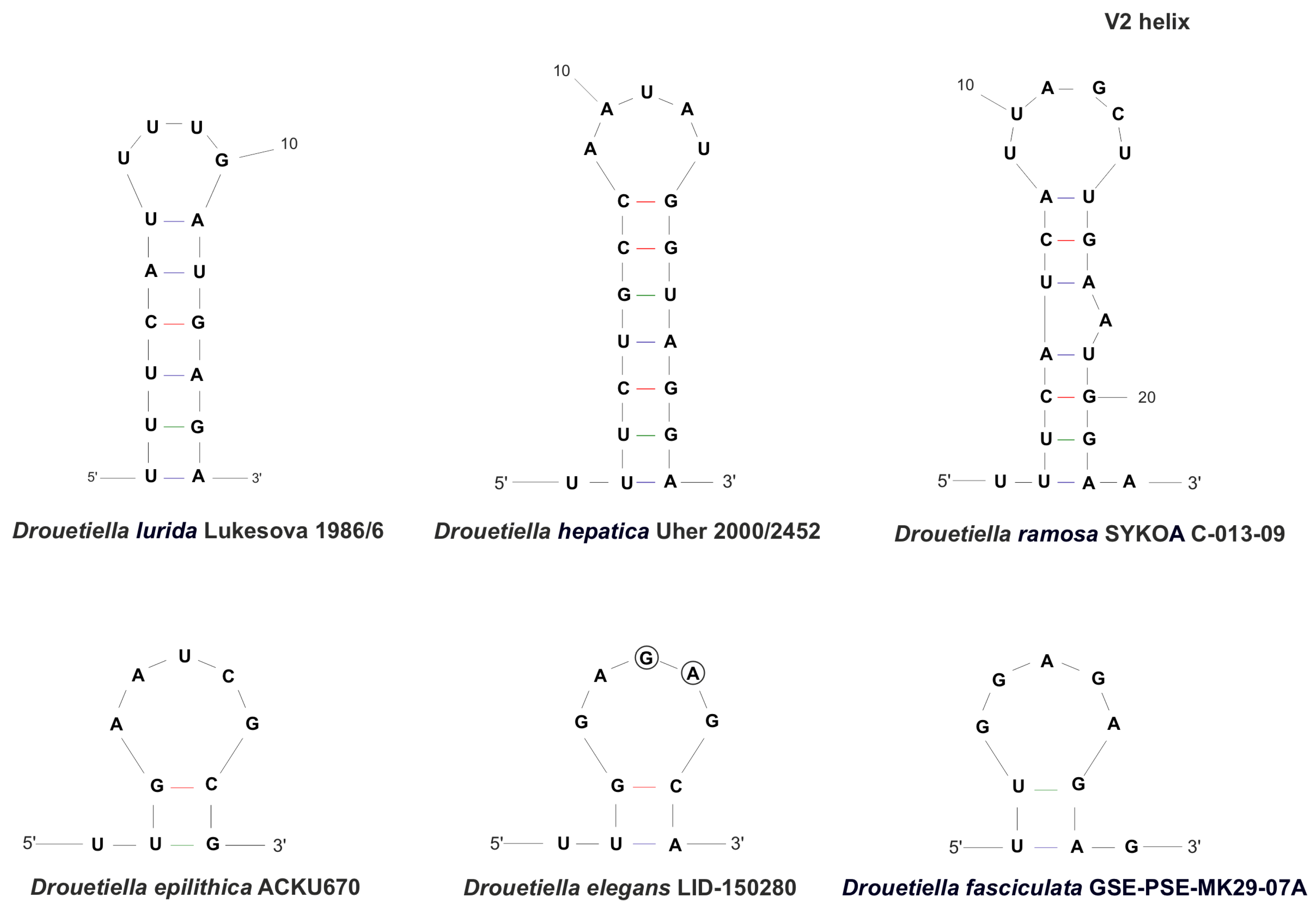 Taxon | ITS Total Length in Current Alignment | D1–D1′ | Box–B | V2 | V3 |