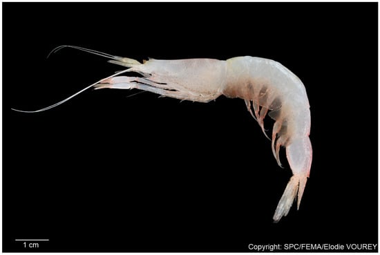 - Komai, T.; Lin, C.W.; Chan, T.Y. Bathypelagic shrimp of the genus Pasiphaea (Decapoda: Caridea: Pasiphaeidae) from waters around Taiwan, with descriptions of four new species. J. Crustac. Biol. 2012, 32, 295–325. [Google Scholar] [CrossRef]