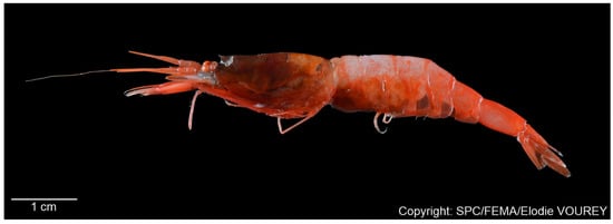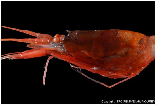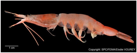 - Komai, T.; Ohtsuka, S.; Yamaguchi, S.; Nakaguchi, K. New records of six deep-sea caridean shrimps (Crustacea: Decapoda) from the Ryukyu Islands and its adjacent waters, southwestern Japan. Zootaxa 2018, 4457, 114–128. [Google Scholar] [CrossRef]