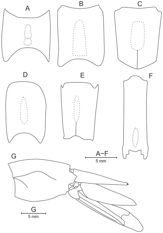 The depth of the telson concavity was measured from the most protruding point at the telson’s posterior end to the level of the most concave point (Figure 2B, dotted line). If the telson was convex, the curvature was measured from the apex of the curvature to the straight line connecting the bases of the paired basal spines.