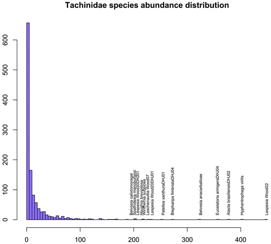 Species abundance histogram with the most commonly reared tachinids indicated.