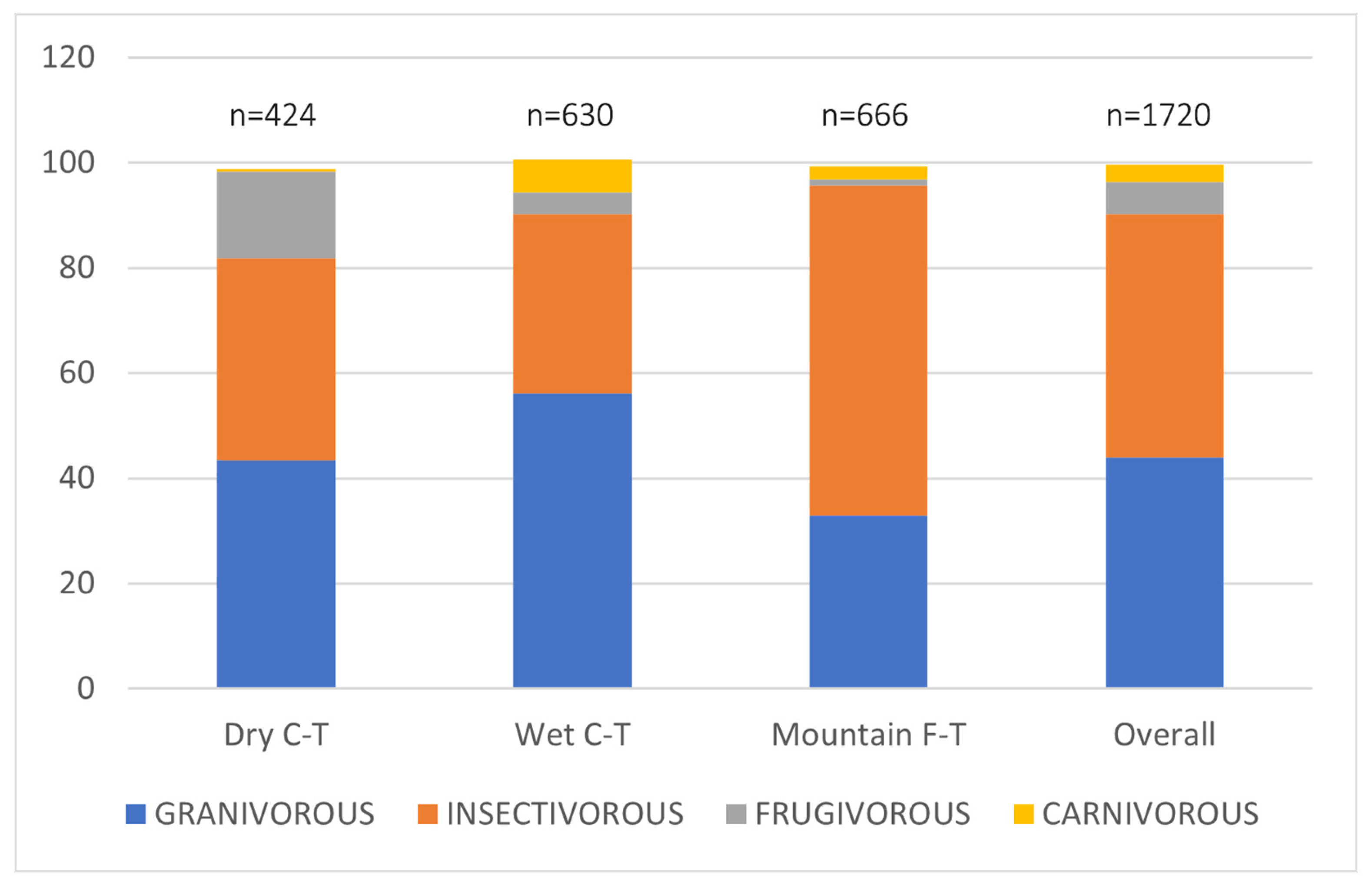 | Granivorous (O1) | 186 | 353 | 219 | 757 |