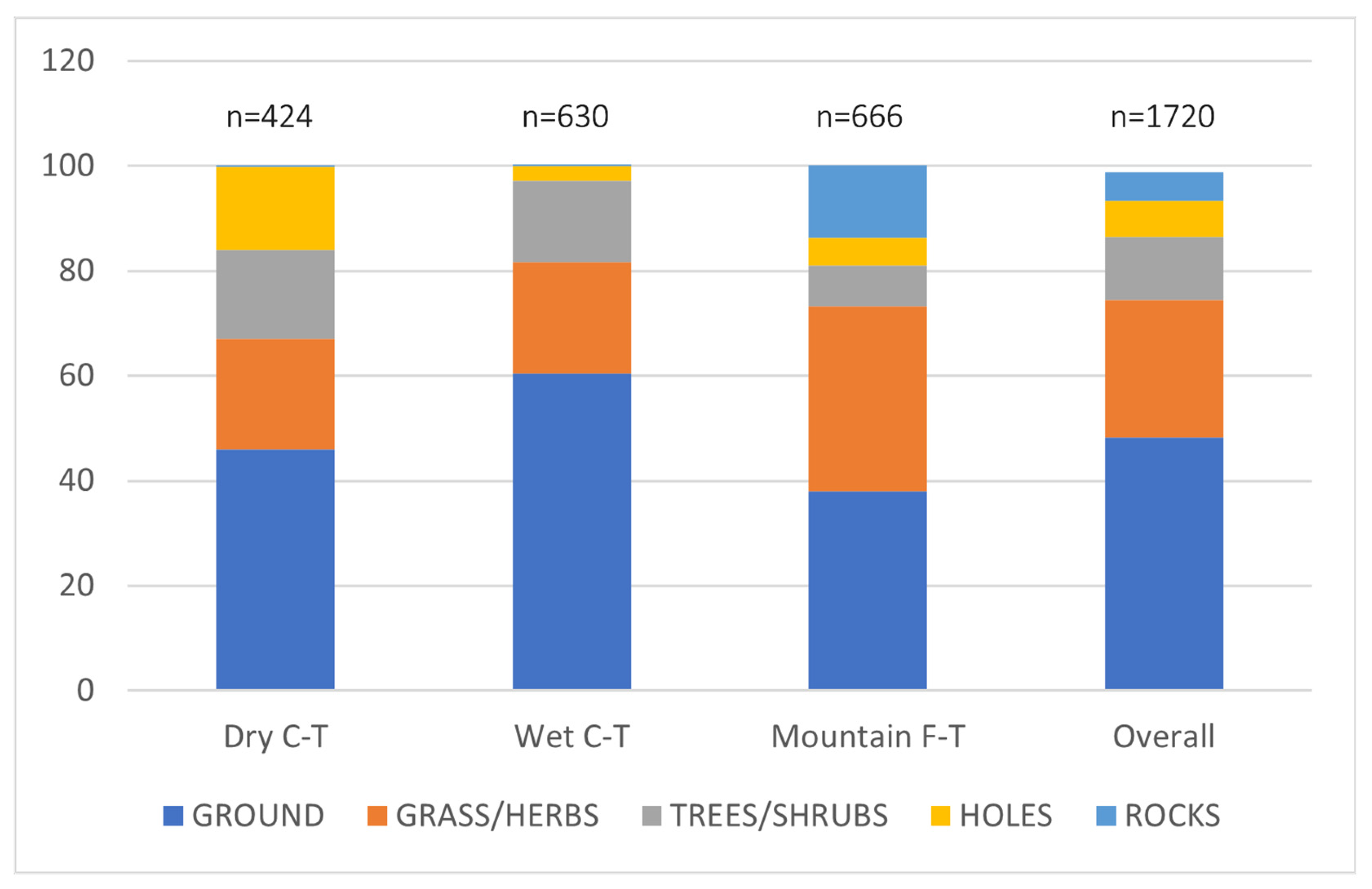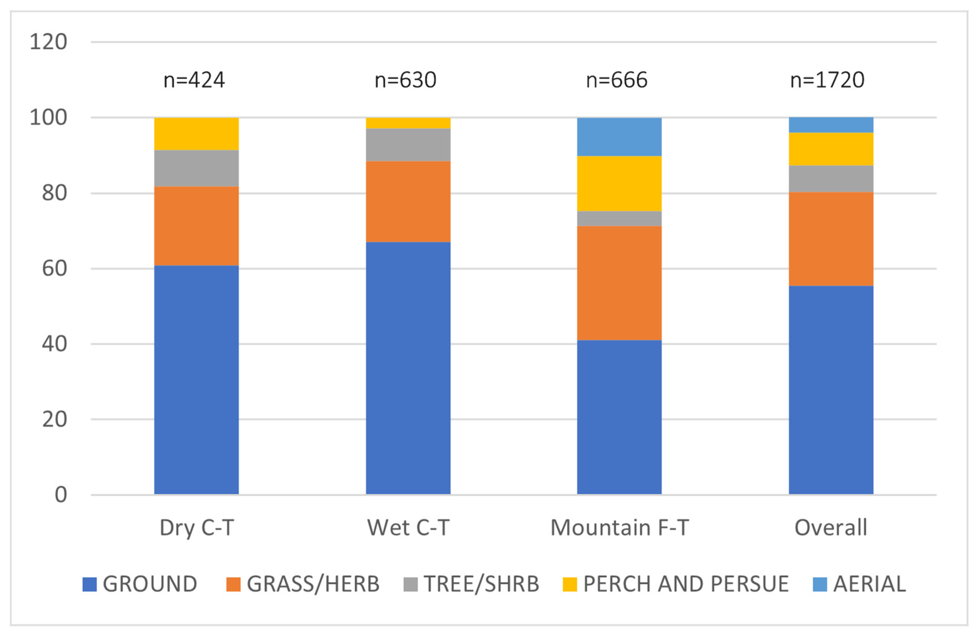 | Pternistes swainsonii | Swainson’s spurfowl | G | G | G | 5 | 1.8 | 1.2 | 6 | 2.2 | 1 | 0 | 0 | 0 | 11 | 1.3 | 0.6 | 5.6 | 0 | 2.5 | 3 |