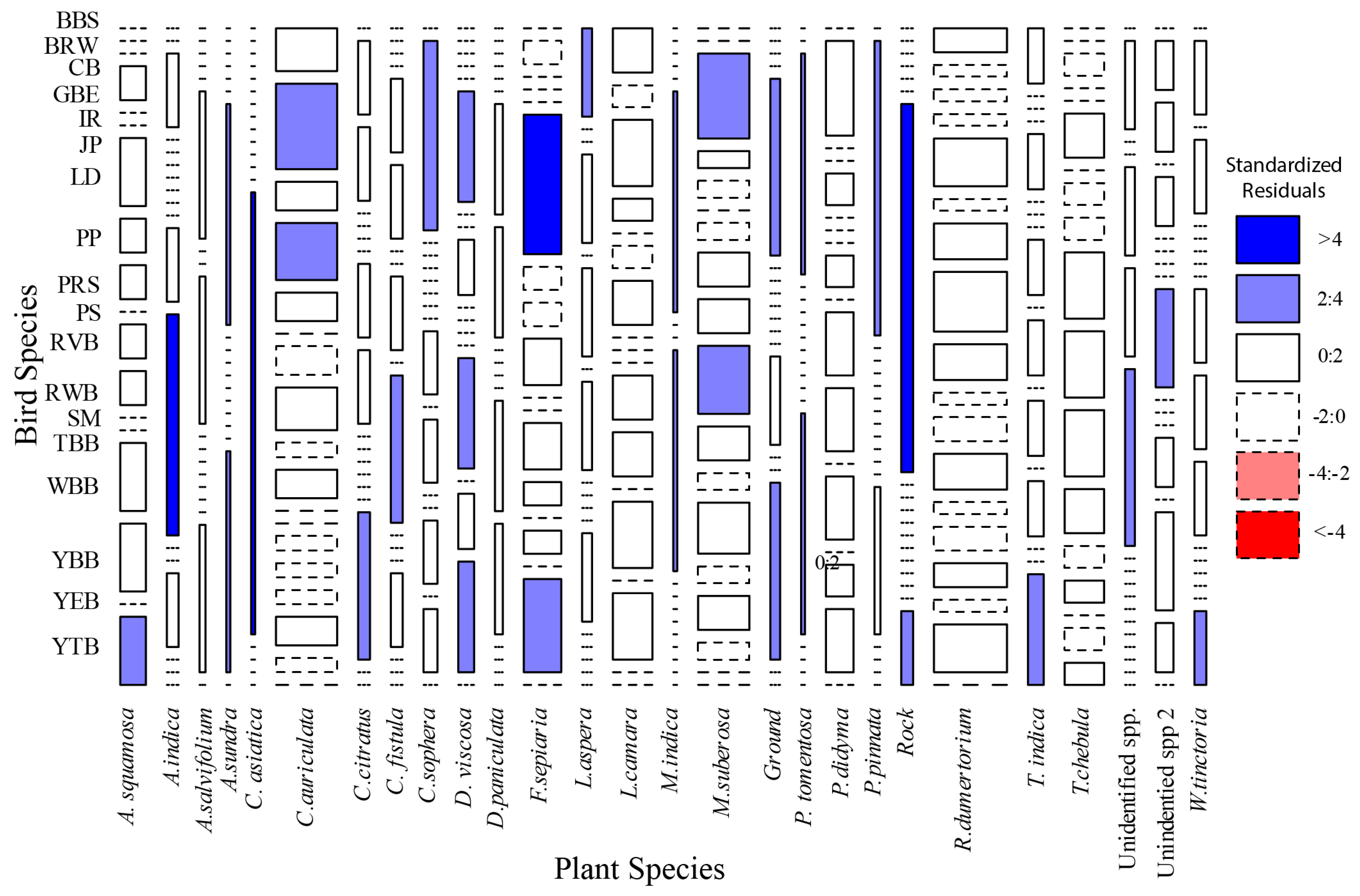 3.3. Association Between Bird Species and Plant Species