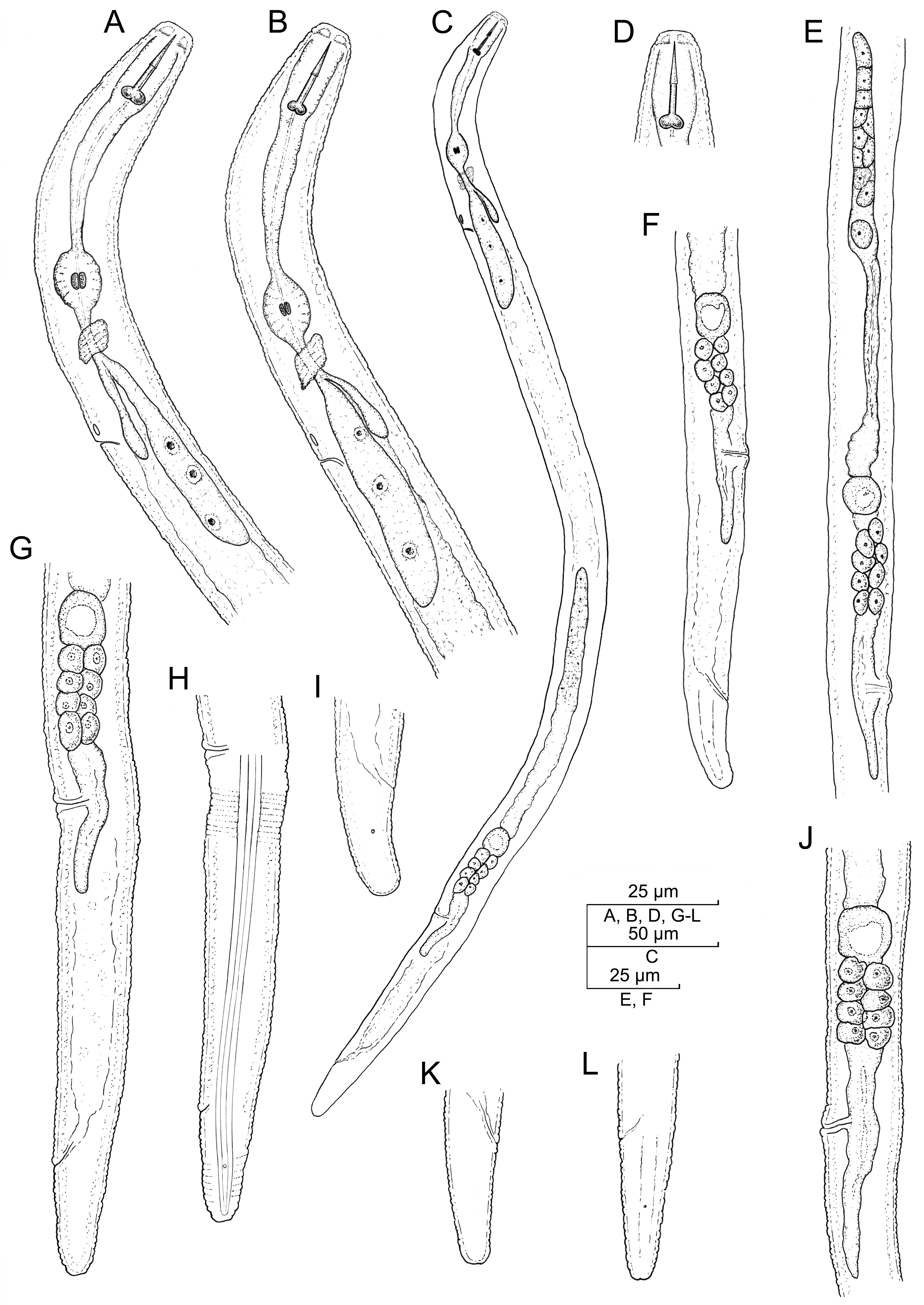 | Stylet length | 17.5 | 17.0 ± 0.8 (16.5–18.0) | 16.5 ± 0.9 (15.0–17.0) |