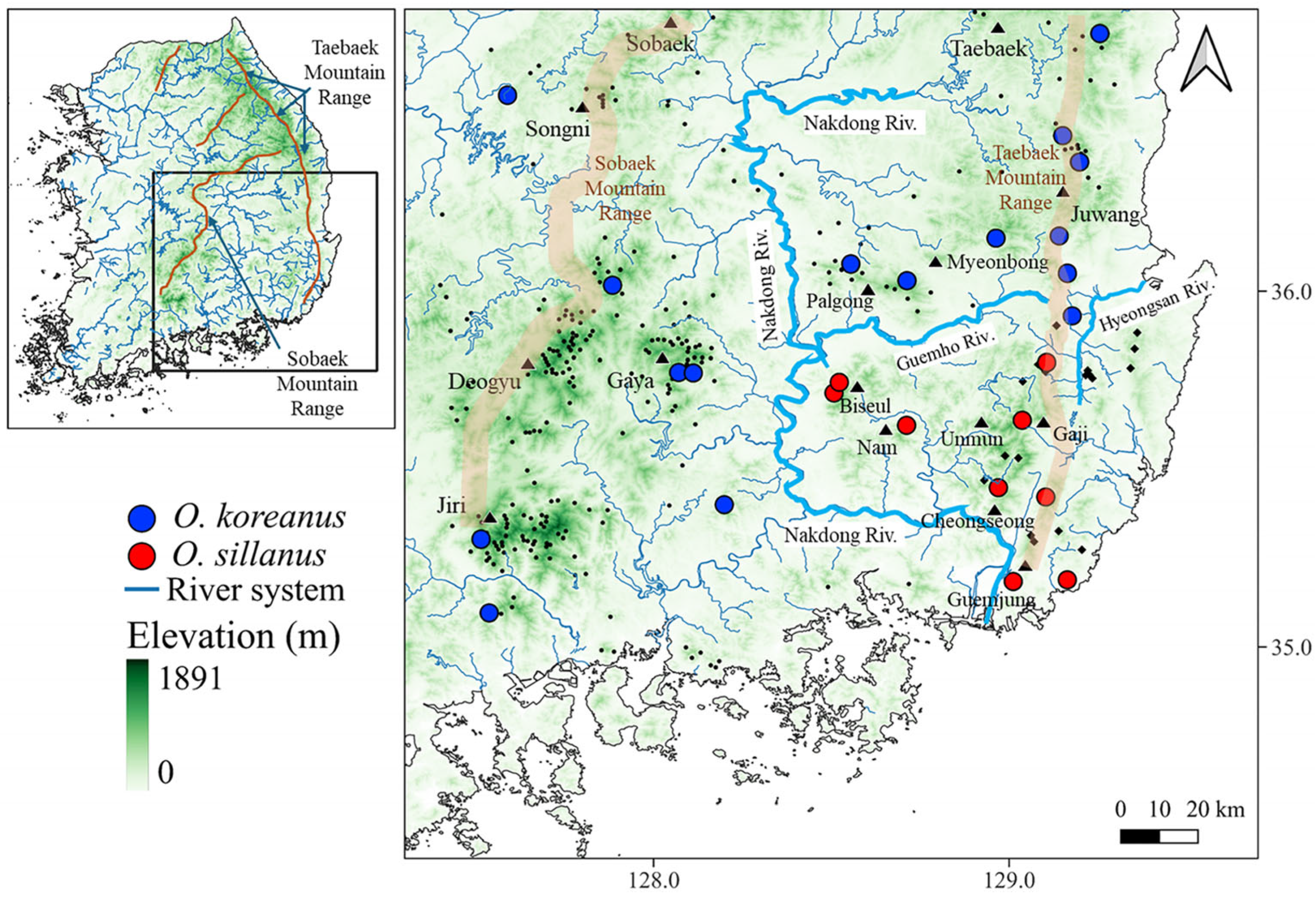Chicago/Turabian StyleKim, Young-Guk, Hahyun Nam, Jaejin Park, Jiho Park, and Daesik Park. 2026. "Distribution and Potential Dispersal Corridors of Two Onychodactylus Species in the Republic of Korea" Diversity 18, no. 1: 57. https://doi.org/10.3390/d18010057