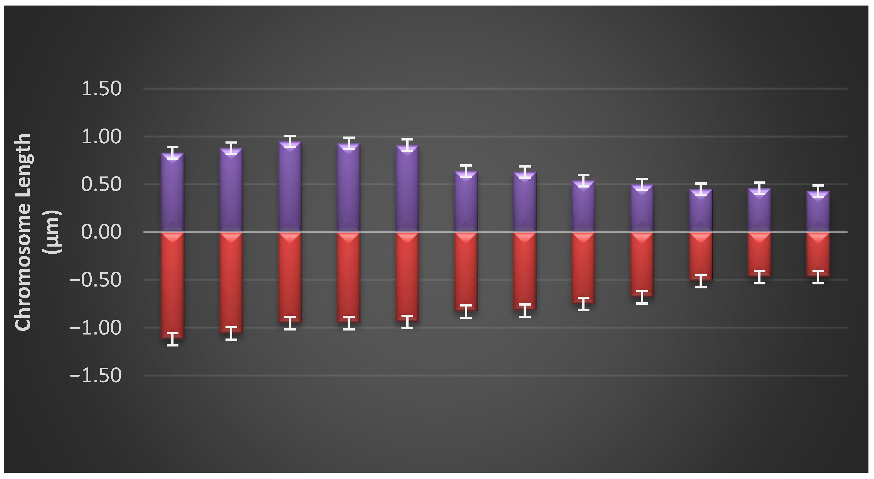| Short arm (S) | Distance between the end of the short arm to centromere (µm) |