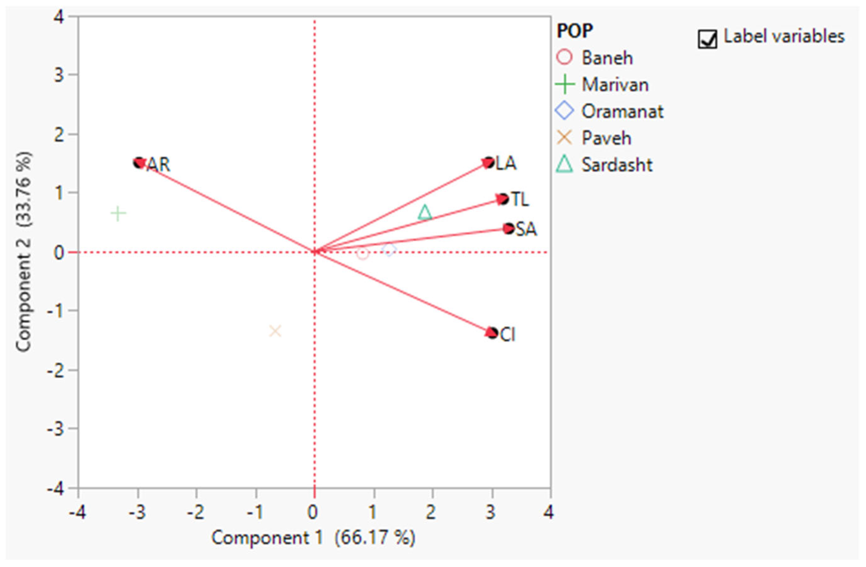 3.6. Principal Component Analysis Based on All Characteristics of Each Population