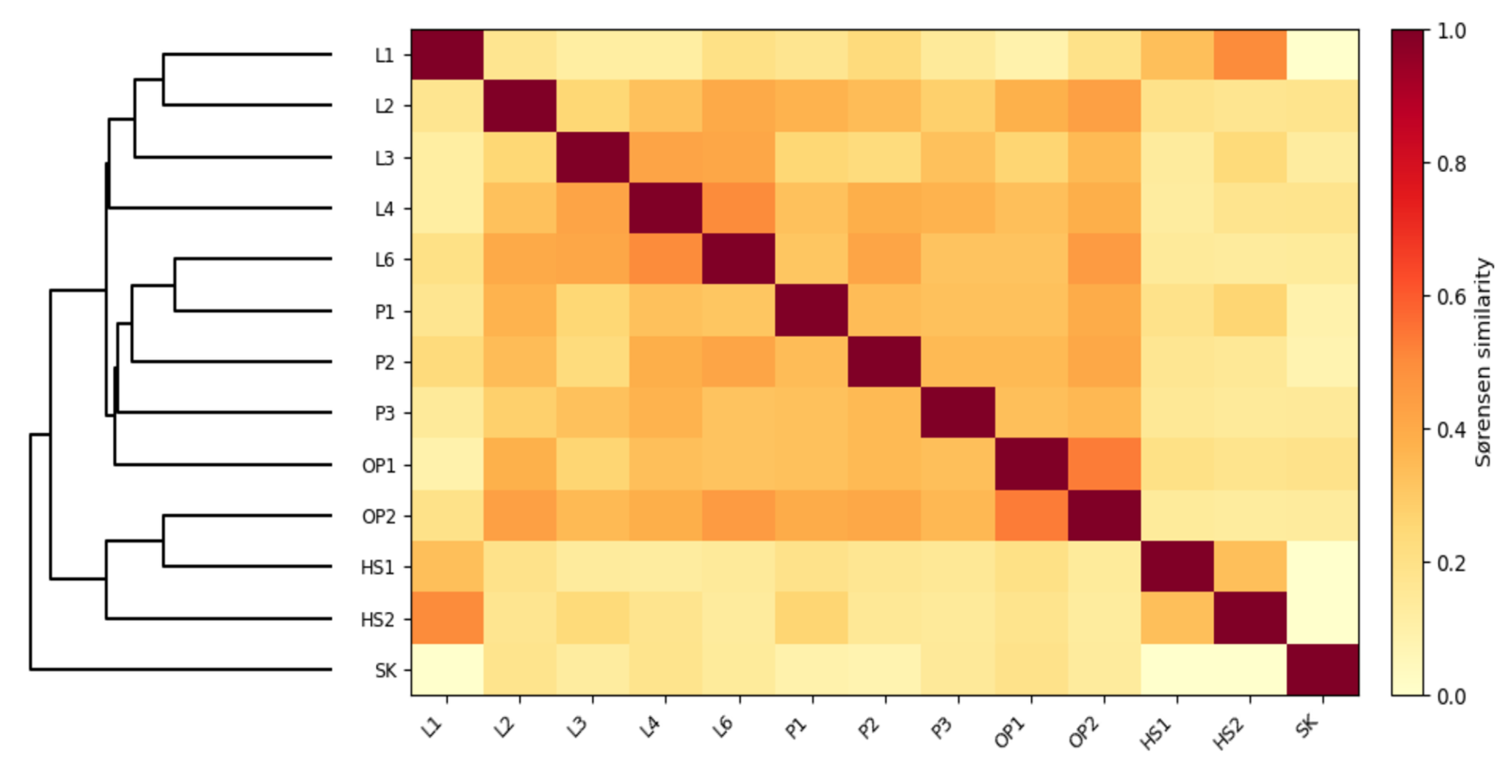 | L3 | 8.5 | 97 | 0.8 | 115 | 0.05 | 58 | 0.3 | NA | NO3−: 0.03 PO43−: <0.001 SO42−: 5.27 Si: 5.93 P: <1 | HCO3−: 19.50 Mg: 2.08 Na: 14.78 K: 0.44 Ca: 5.15 | Fe: 52.50 Mn: <1 Zn: 3.24 Cu: 13.98 Ni: <1 | 13 |
