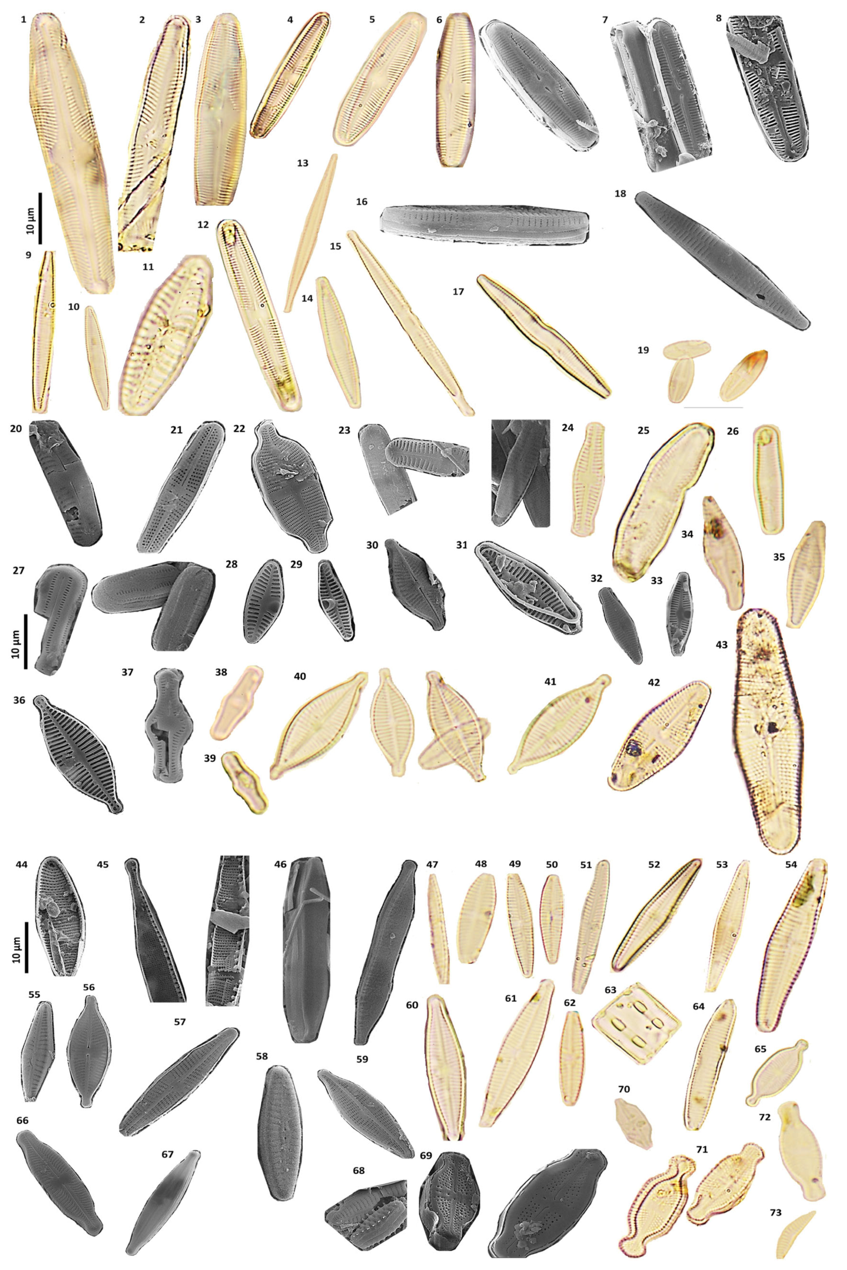 - Krammer, K.; Lange-Bertalot, H. Bacillariophyceae. 5: English and French Translation of the Keys. Engl. Transl. by Nina Bate; French Transl. by Jeanne Bukowska. In Süßwasserflora von Mitteleuropa/Begr. von A. Pascher. Hrsg. von E. Ettl; Spektrum Akad. Verl: Heidelberg, Berlin, Germany, 2000; ISBN 978-3-8274-1030-6. [Google Scholar]