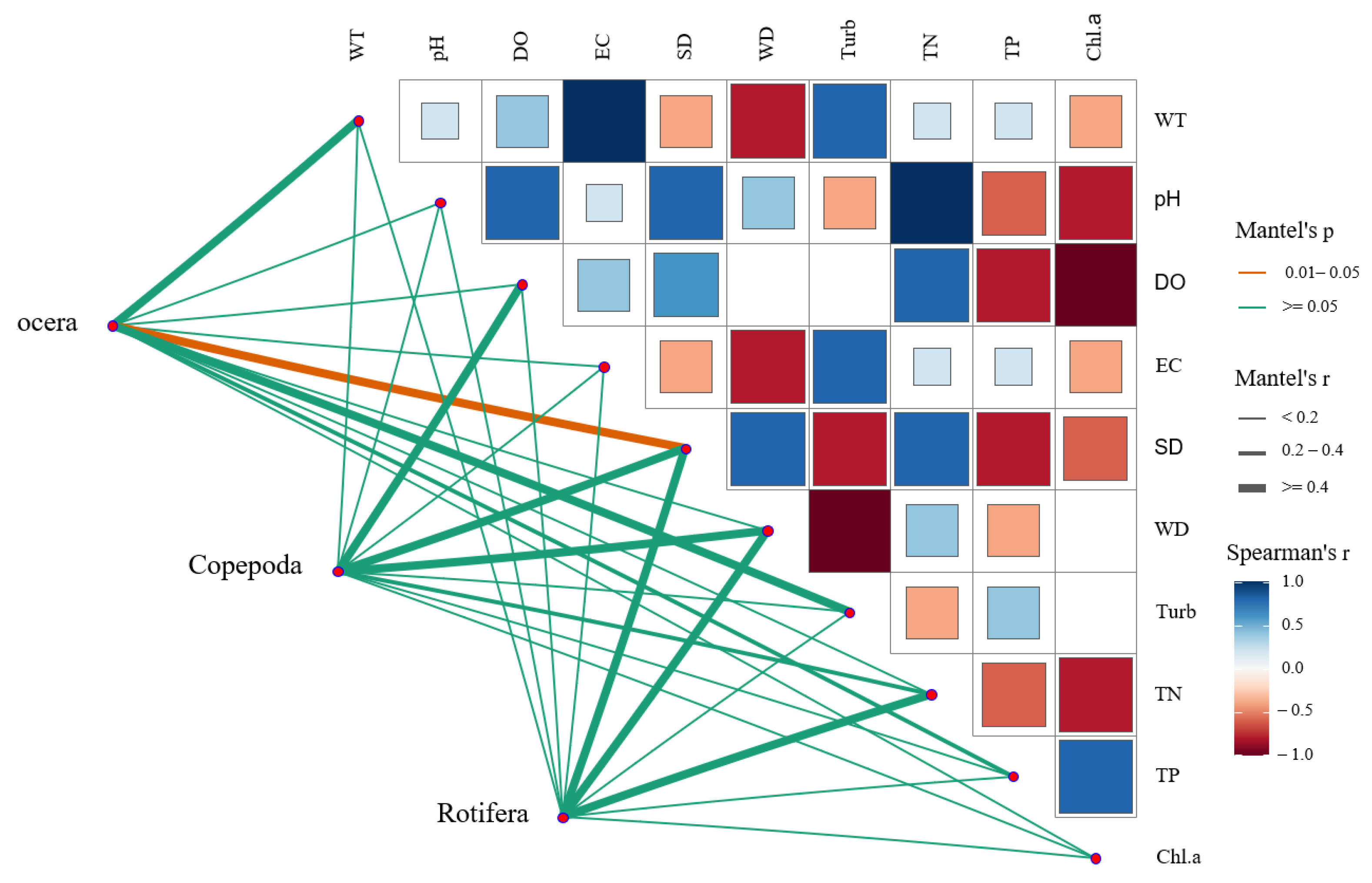 - Zhang, K.; Jiang, F.; Chen, H.; Dibar, D.T.; Wu, Q.; Zhou, Z.J.E.P. Temporal and spatial variations in zooplankton communities in relation to environmental factors in four floodplain lakes located in the middle reach of the Yangtze River, China. Environ. Pollut. 2019, 251, 277–284. [Google Scholar] [CrossRef] [PubMed]