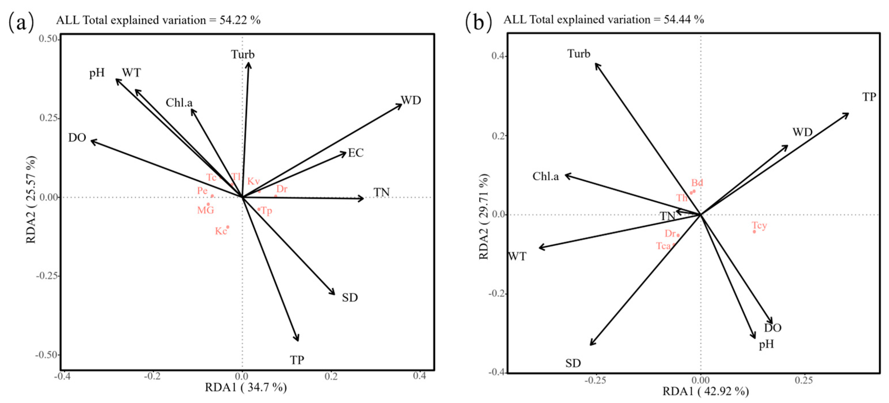 - Li, Y.; Xie, P.; Zhao, D.; Zhu, T.; Guo, L. Eutrophication strengthens the response of zooplankton to temperature changes in a high-altitude lake. Ecol. Evol. 2016, 6, 6690–6701. [Google Scholar] [CrossRef]