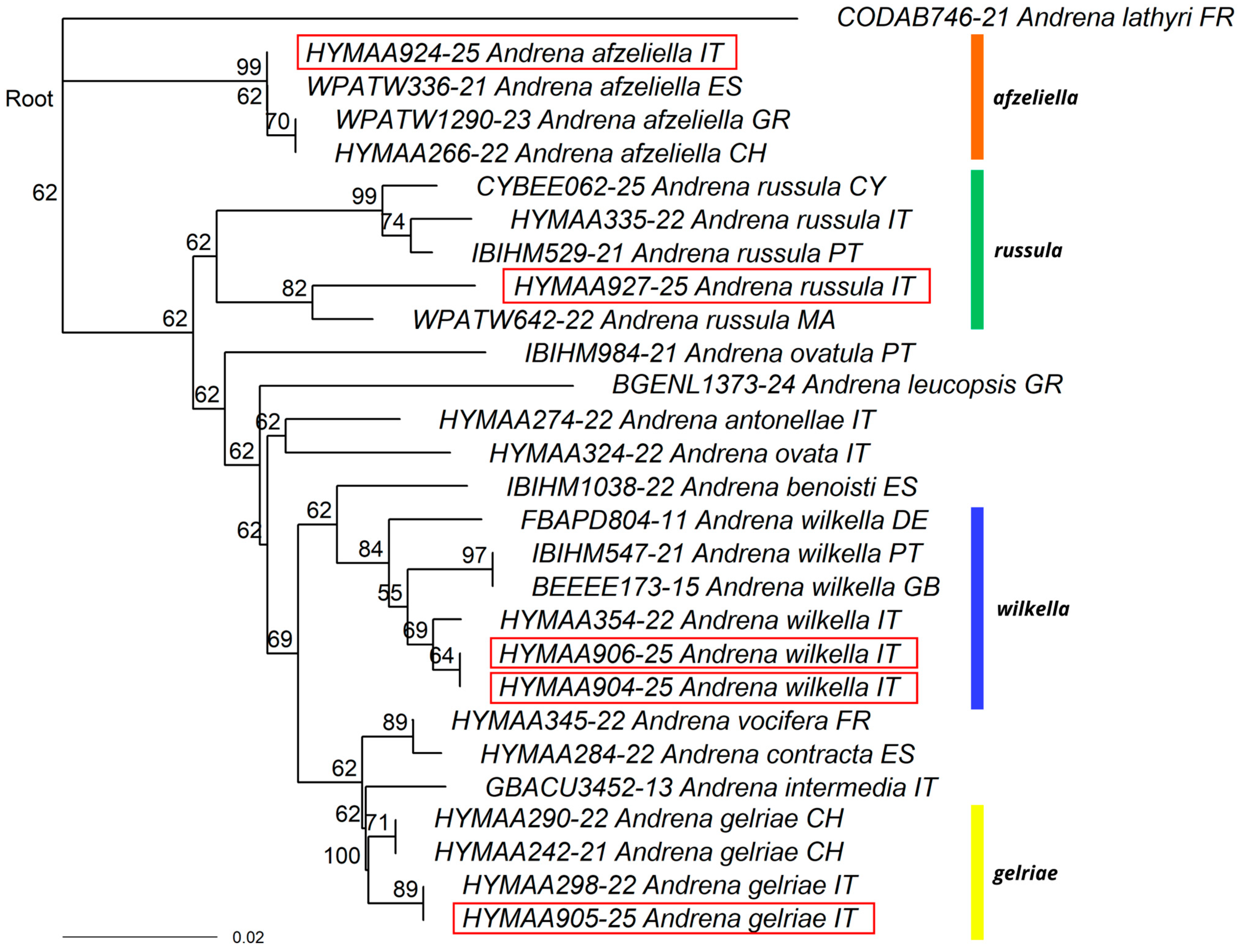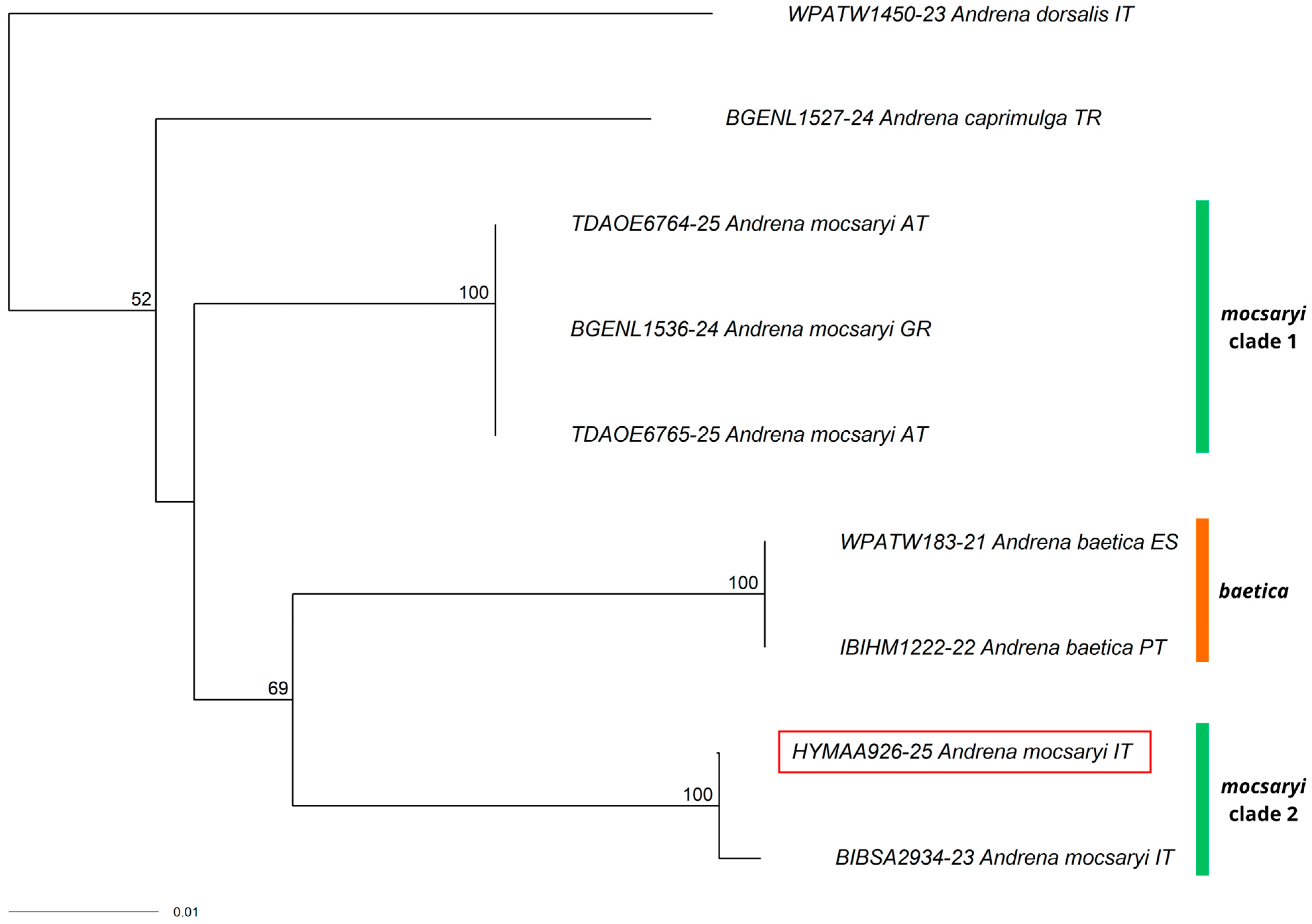 - Wood, T.; Praz, C.; Selis, M.; Flaminio, S.; Mei, M.; Cornalba, M.; Rosa, P.; Le Divelec, R.; Michez, D. Revisions to the Andrena fauna of Italy, with the description of a new species (Hymenoptera: Andrenidae). Fragm. Entomol. 2023, 55, 271–310. [Google Scholar]