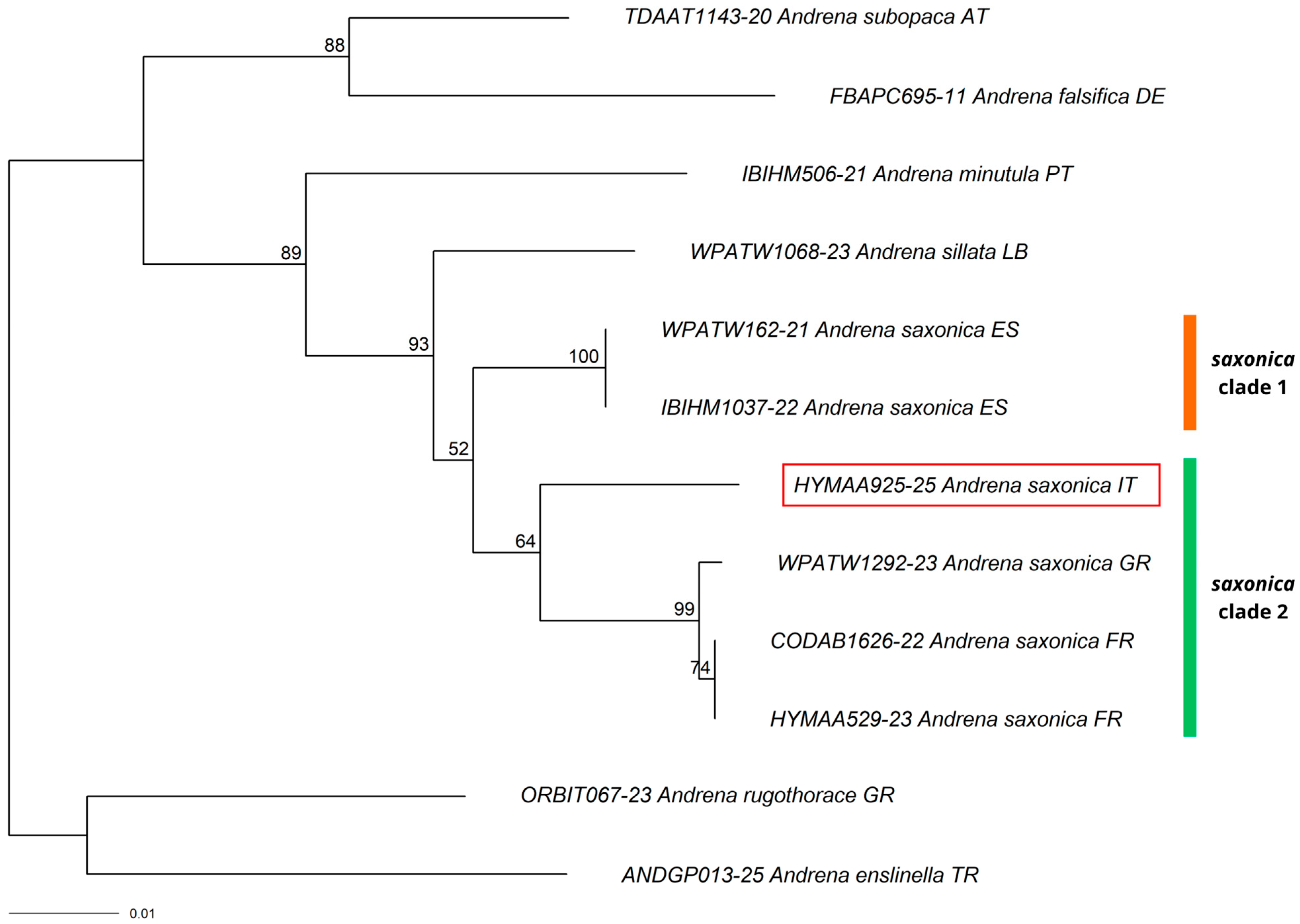 - Praz, C.; Genoud, D.; Vaucher, K.; Bénon, D.; Monks, J.; Wood, T.J. Unexpected levels of cryptic diversity in European bees of the genus Andrena subgenus Taeniandrena (Hymenoptera, Andrenidae): Implications for conservation. J. Hymenopt. Res. 2022, 91, 375–428. [Google Scholar] [CrossRef]