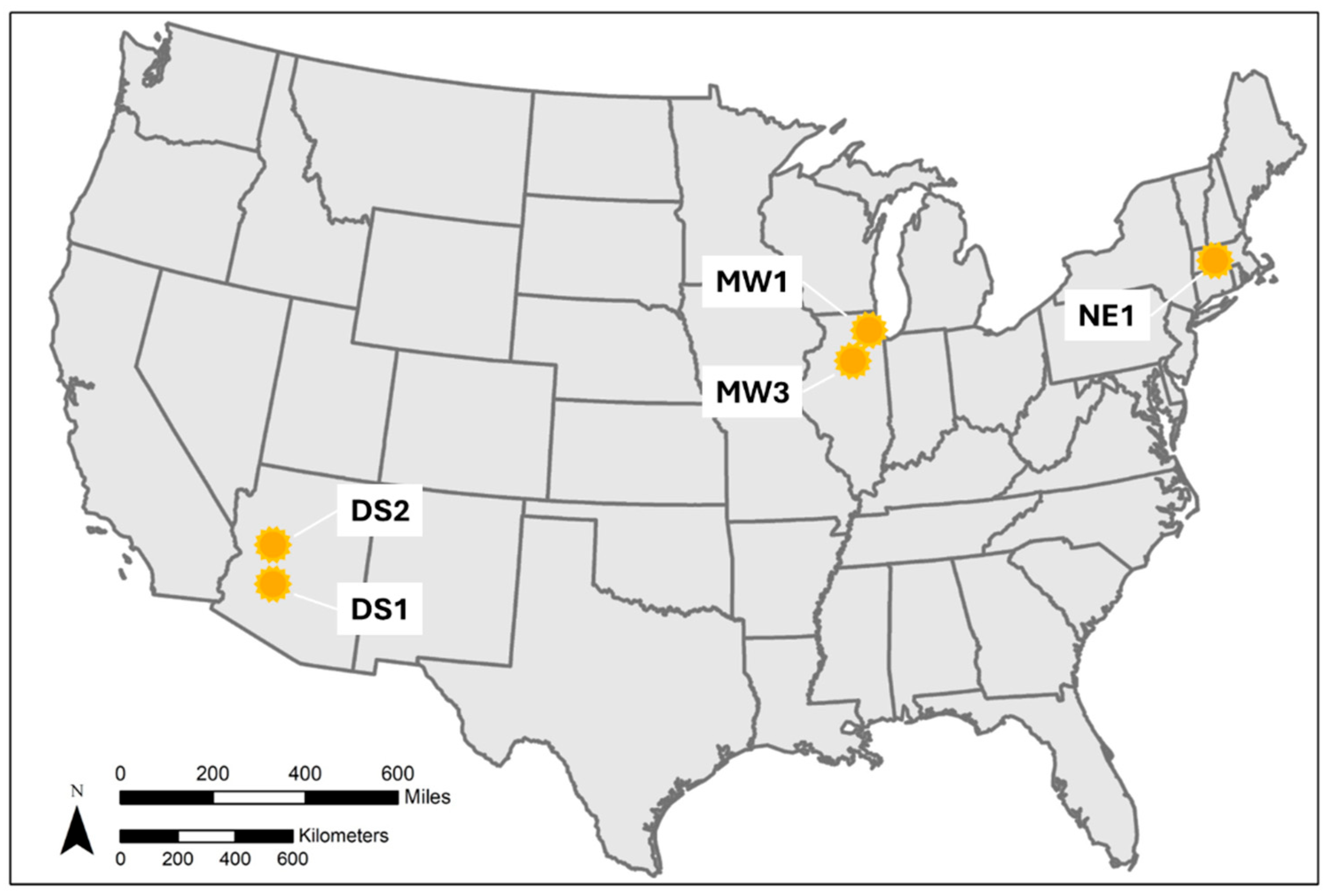 - Walston, L.J.; Hartmann, H.M.; Fox, L.; Stanger, M.E.; Steele, S.E.; Narváez, N.R.; Szoldatits, K.E.; Hogstrom, I.; Macknick, J. Ecovoltaic solar energy development can promote grassland bird communities. J. Appl. Ecol. 2025, 62, 3341–3354. [Google Scholar] [CrossRef]