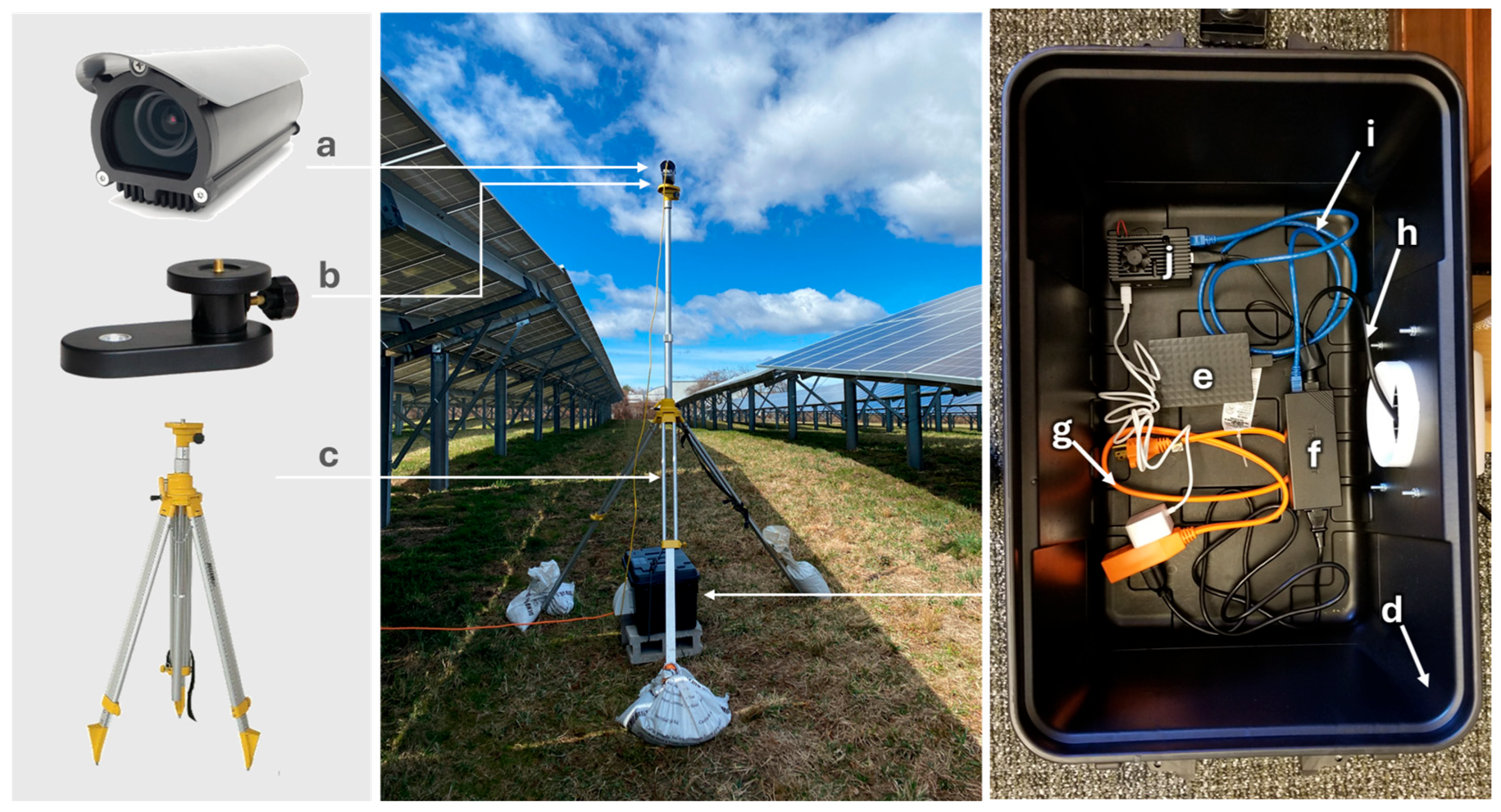 | Data storage unit | Seagate 4TB portable hard drive (one drive per week, Fremont, CA, USA); Single board computer (Raspberry pi [varying models]), GeekPi Raspberry Pi 4 Armor Case with Fan; TRENDnet Gigabit PoE injector (Torrance, CA, USA); Ethernet cables (Cat6 Ethernet Cable, 10 ft with a dust cap and 3 ft); Extension cords (indoor-rated 3 ft, outdoor-rated 100 ft); Enclosure (56 Qt trunk); Exhaust cap (Dundas Jafine ProMax 4″); and Bungee cord (48 in) |