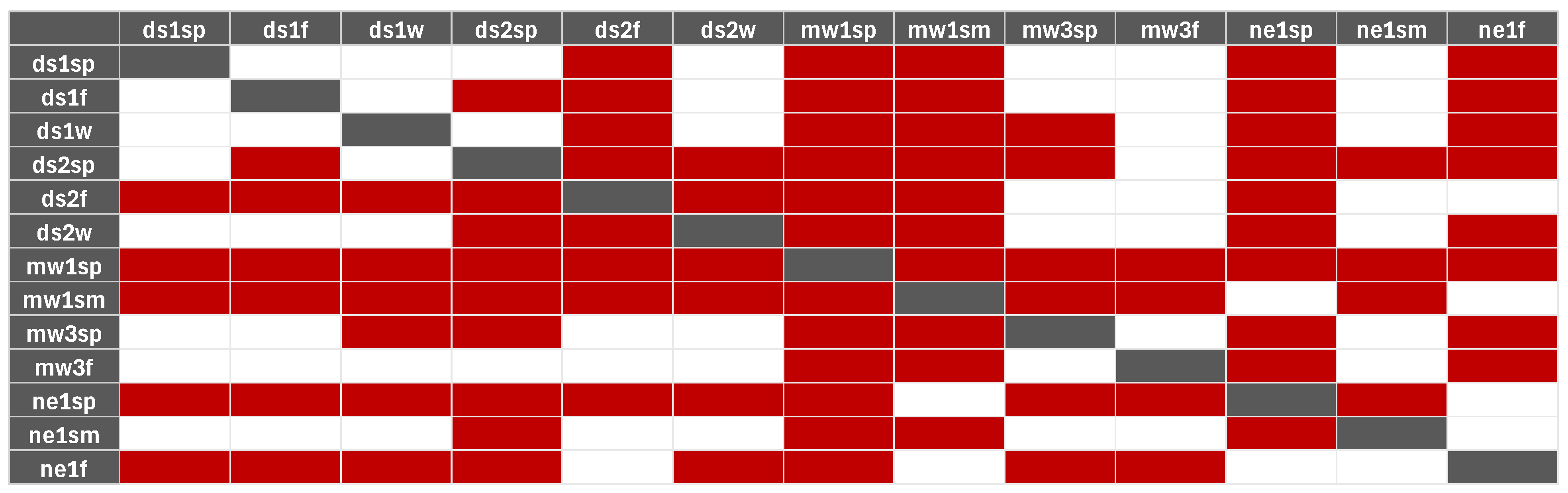 | Desert Southwest 1 | Desert Southwest 2 | Midwest 1 | Midwest 3 | Northeast 1 | |