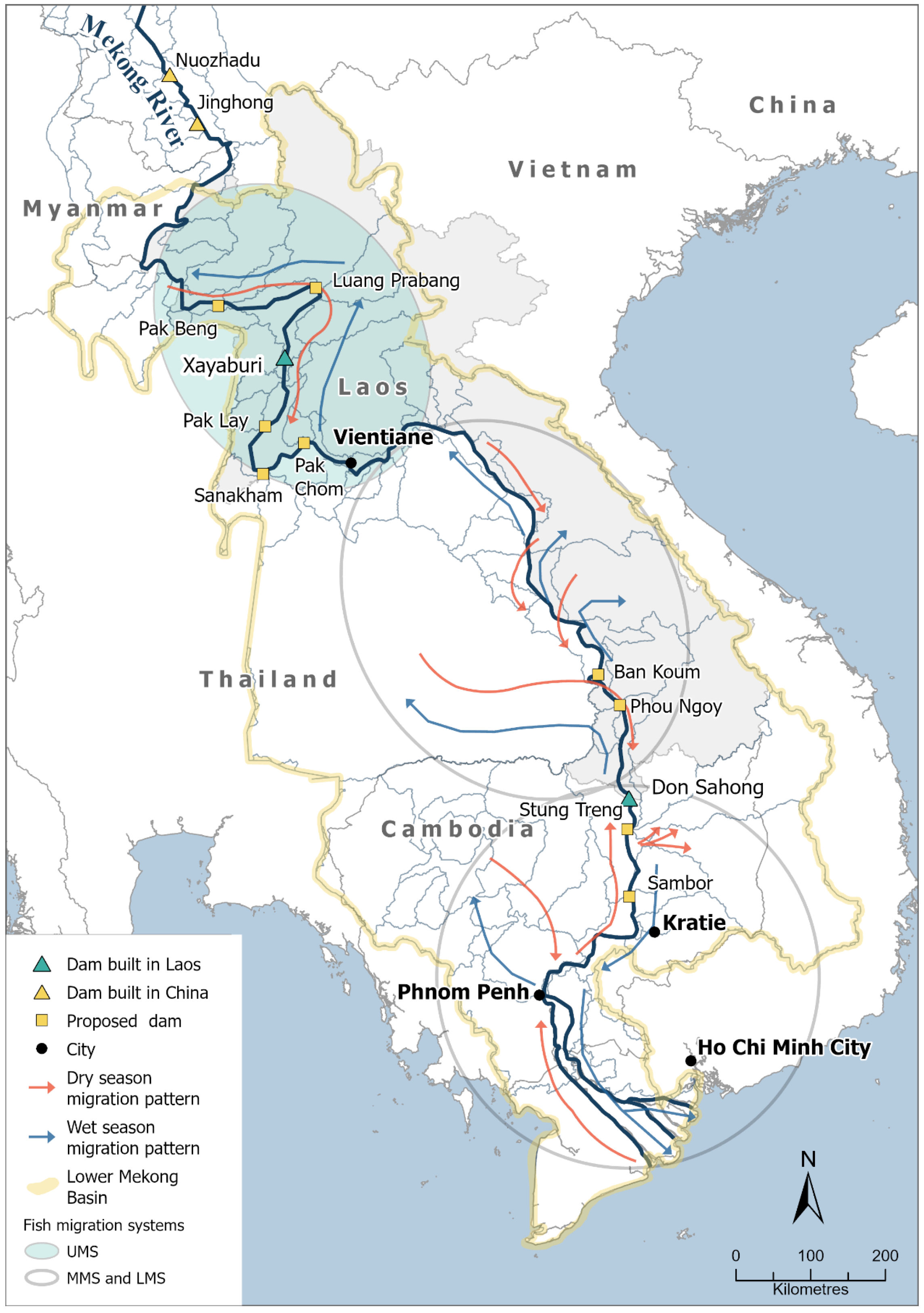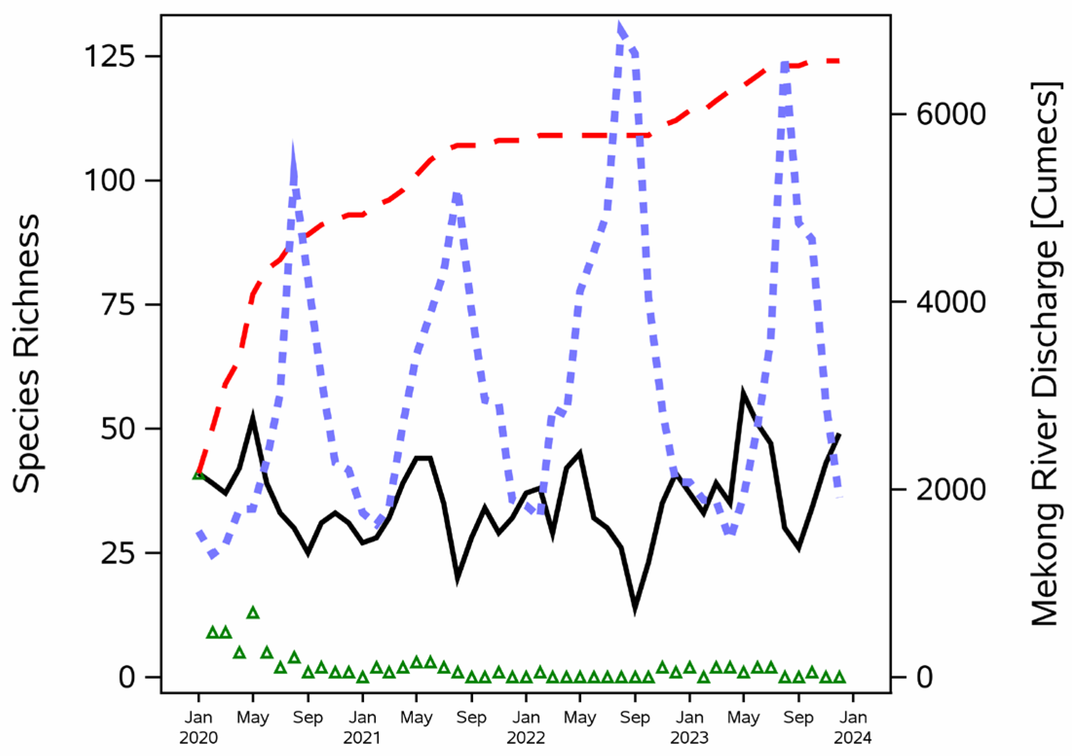 - Provide baseline monitoring of upstream-migrating fish diversity and fish assemblages before the Laos hydropower cascade comes online.