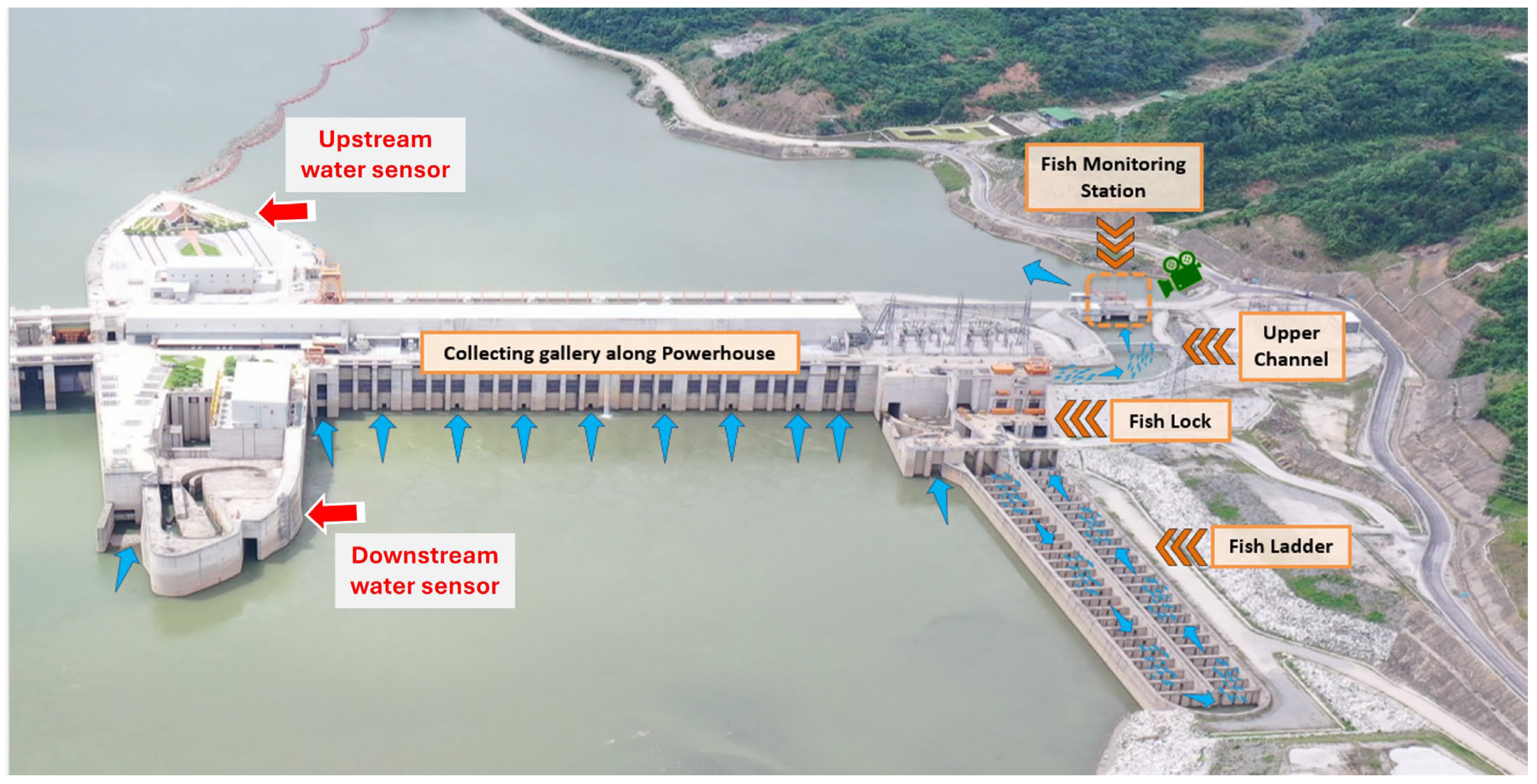 - Raeder, M.; Thanakunvoraset, N. The Xayaburi fishpass system—Design concept and development. In Proceedings of the International Conference on Engineering and Ecohydrology for Fish Passage, Amherst, MA, USA, 11 December 2018. [Google Scholar]
