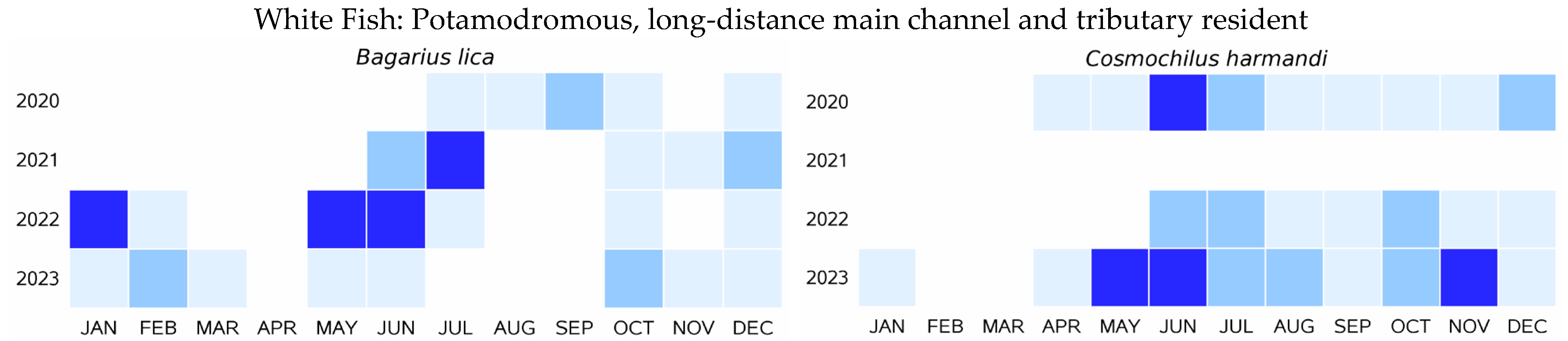 3.5.2. White Fish: Long-Distance Main Channel Residents