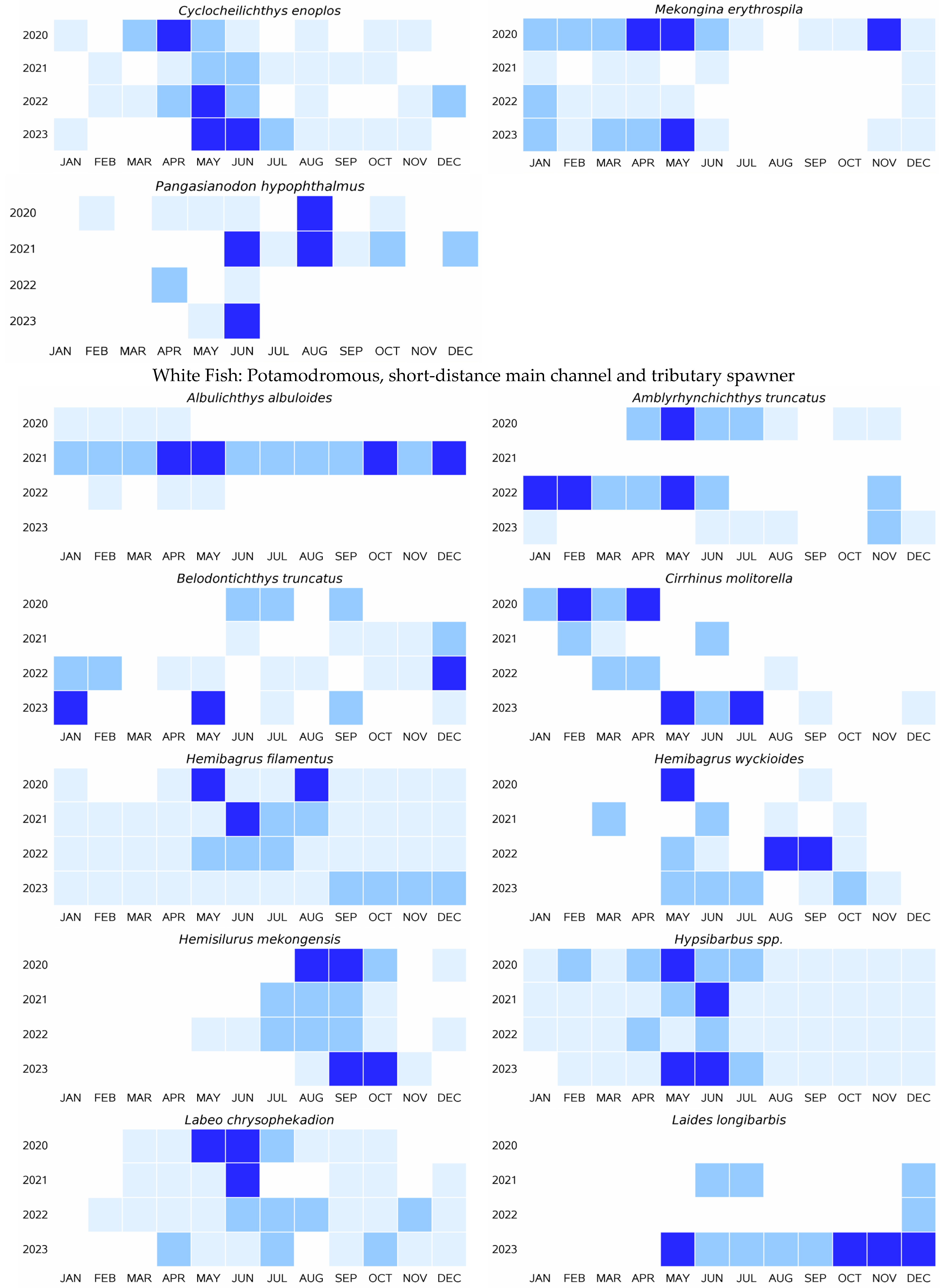 | White Fish | Long-distance main channel migrators and tributary resident | Long-distance main channel migrants spawning in the main channel, and may migrate to deep pools in the main channel during the dry season |