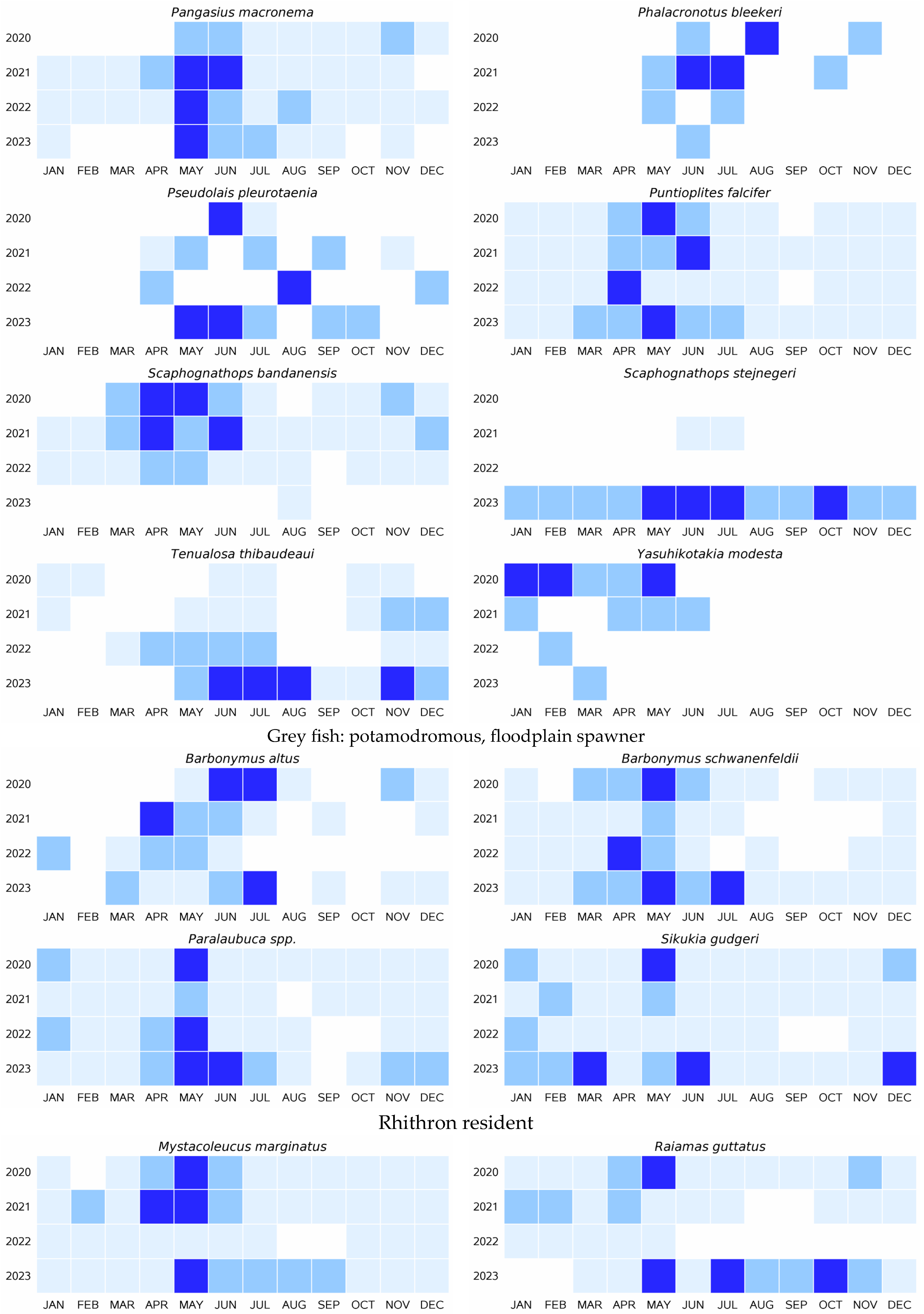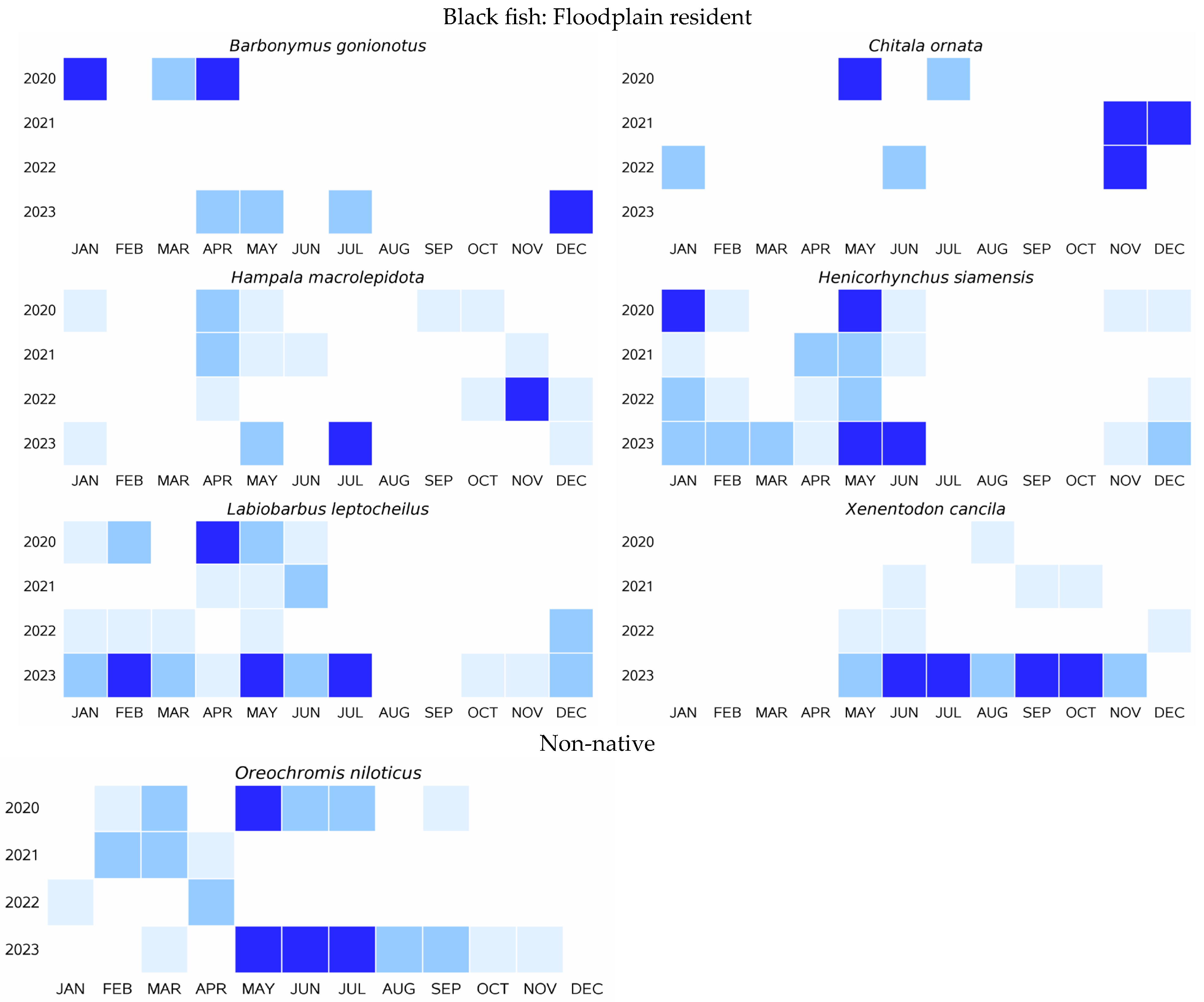 | Black fish | Floodplain resident | Limited migrations between floodplains, pools, river margins, swamps, and inundated floodplains |