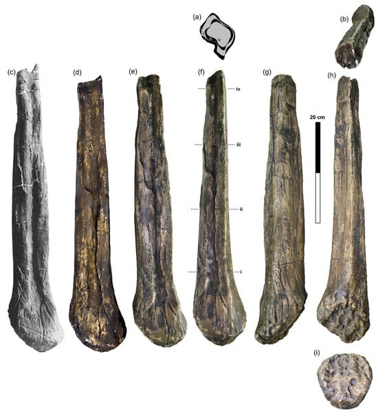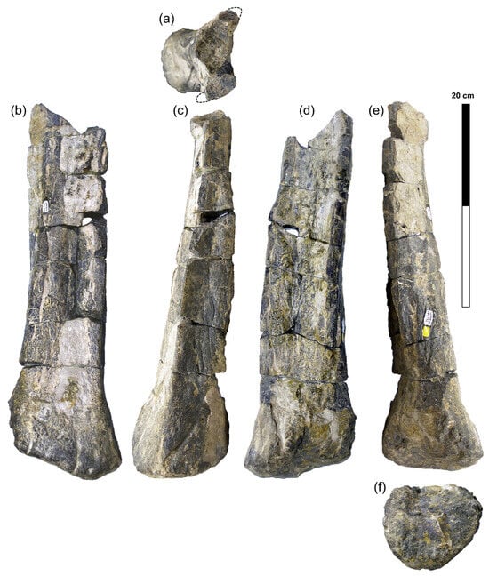 - Owen, R. Part II (Genera Bothriospondylus, Cetiosaurus, Omosaurus). In A Monograph on the Fossil Reptilia of the Mesozoic Formations; Owen, R., Ed.; Palaeontographical Society: London, UK, 1875; pp. 15–93. [Google Scholar]